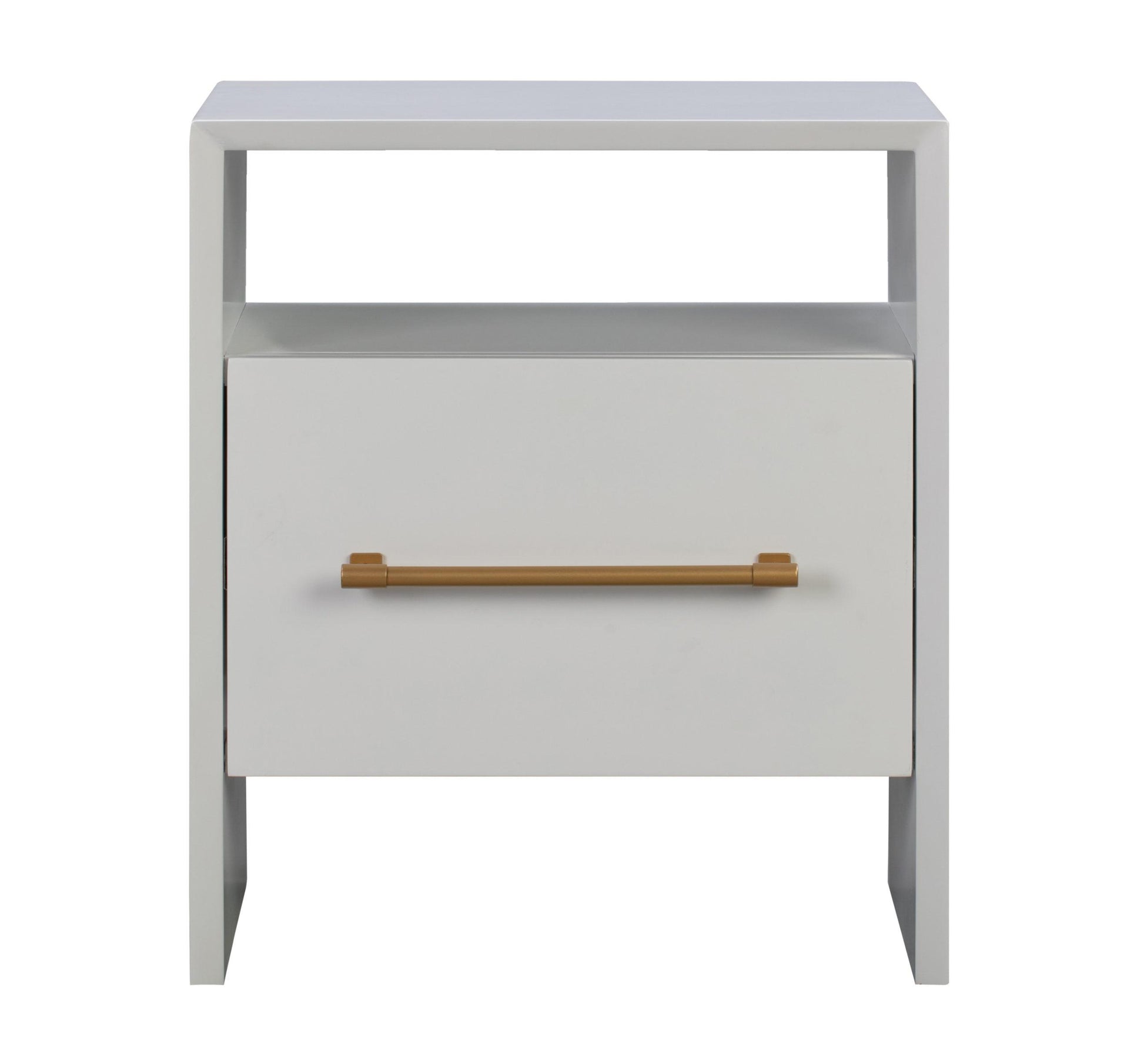 Stunning in its simplicity, this clean-lined nightstand modern appeal and stylish functionality. One drawer and a shelf above provide ample bedside storage. Available in two color options.