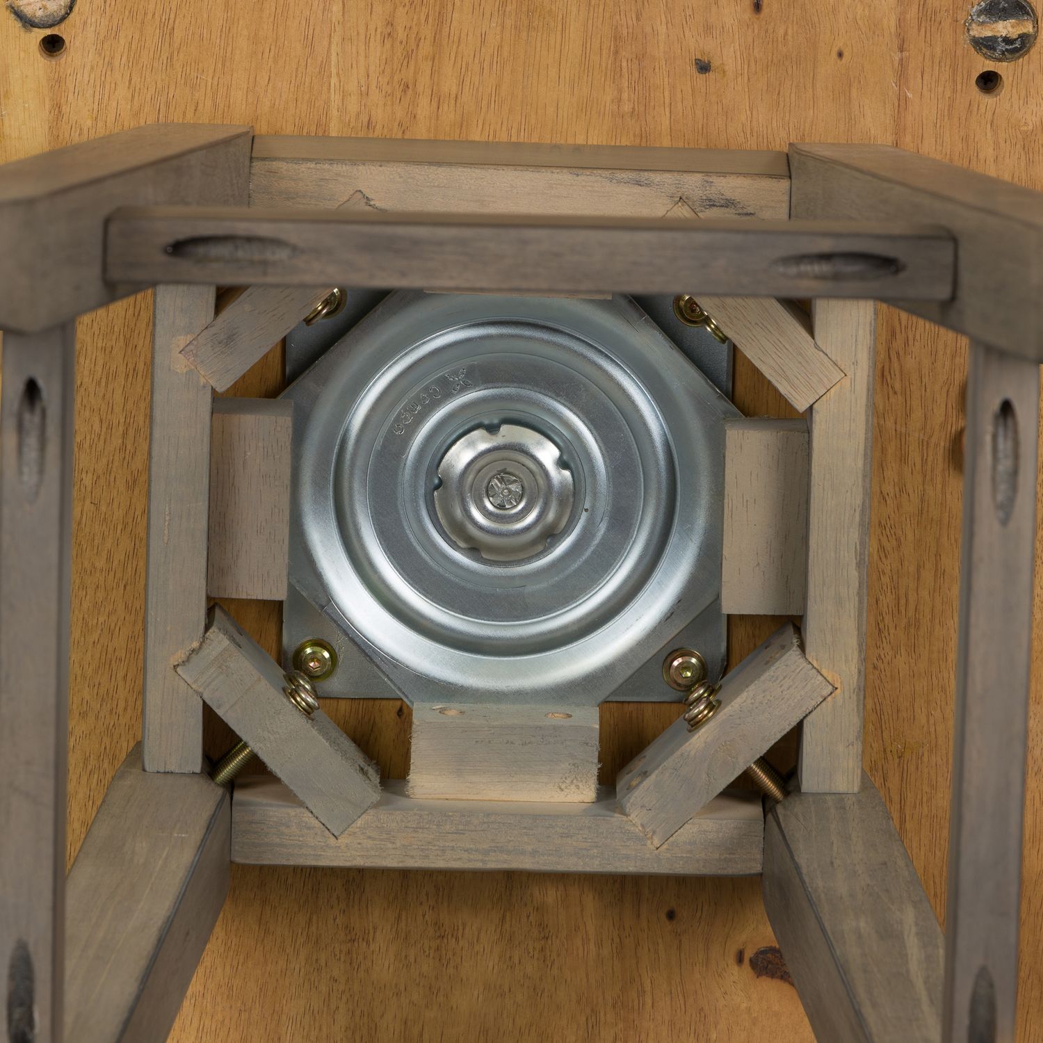 Sit in comfort and style with the Lindsey Farm counter height swivel chair. Crafted of rubberwood solids, this piece features a gray and sandstone finish, inverted v design on the chair back, nylon chair glides to protect your flooring, and a swivel saddle shaped seat for added comfort. This piece has an alternate finish and offers a look that compliments today's homes with style uncompromised and comfort abound.