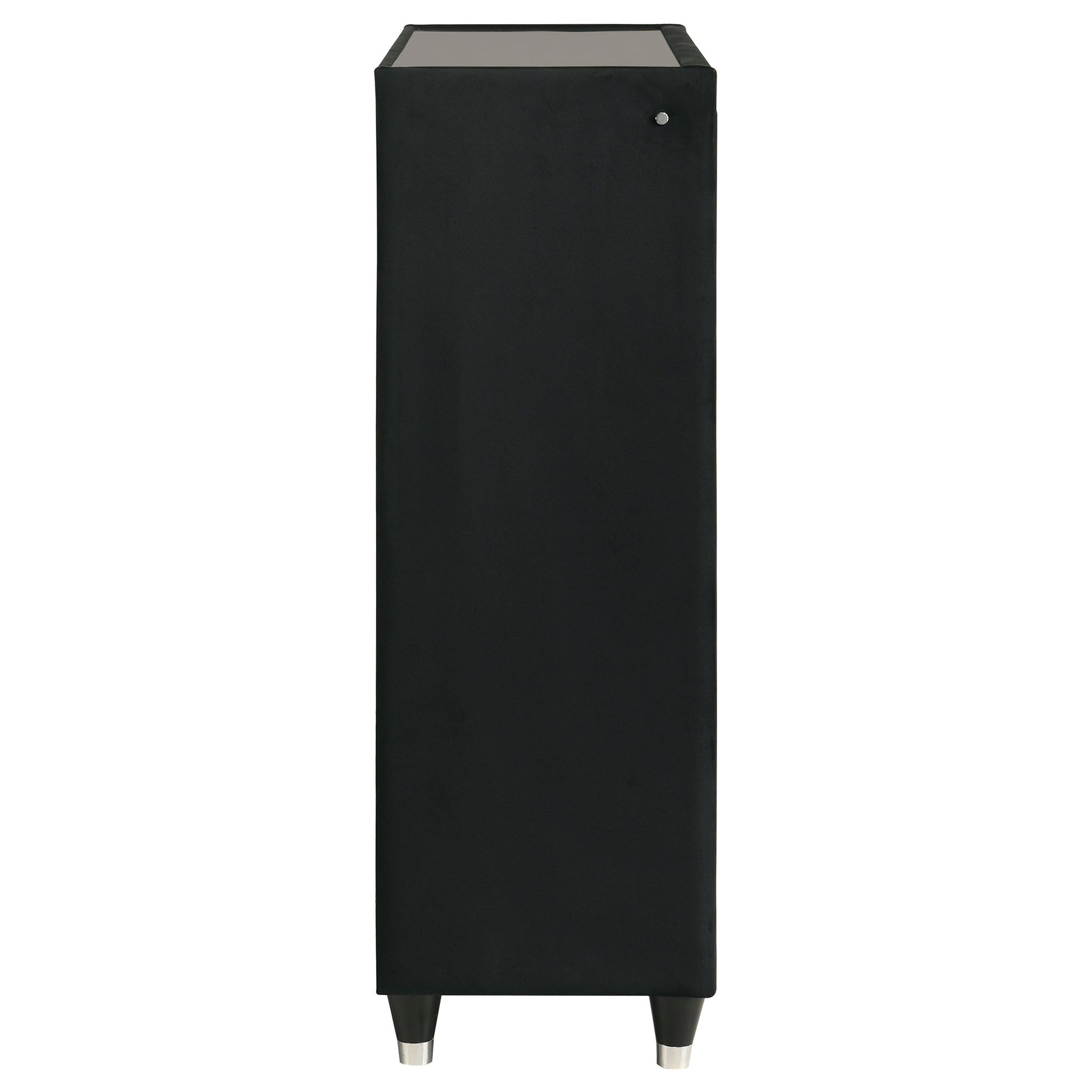 • Five-drawer chest fully wrapped in a black velvet for a layered plush effect