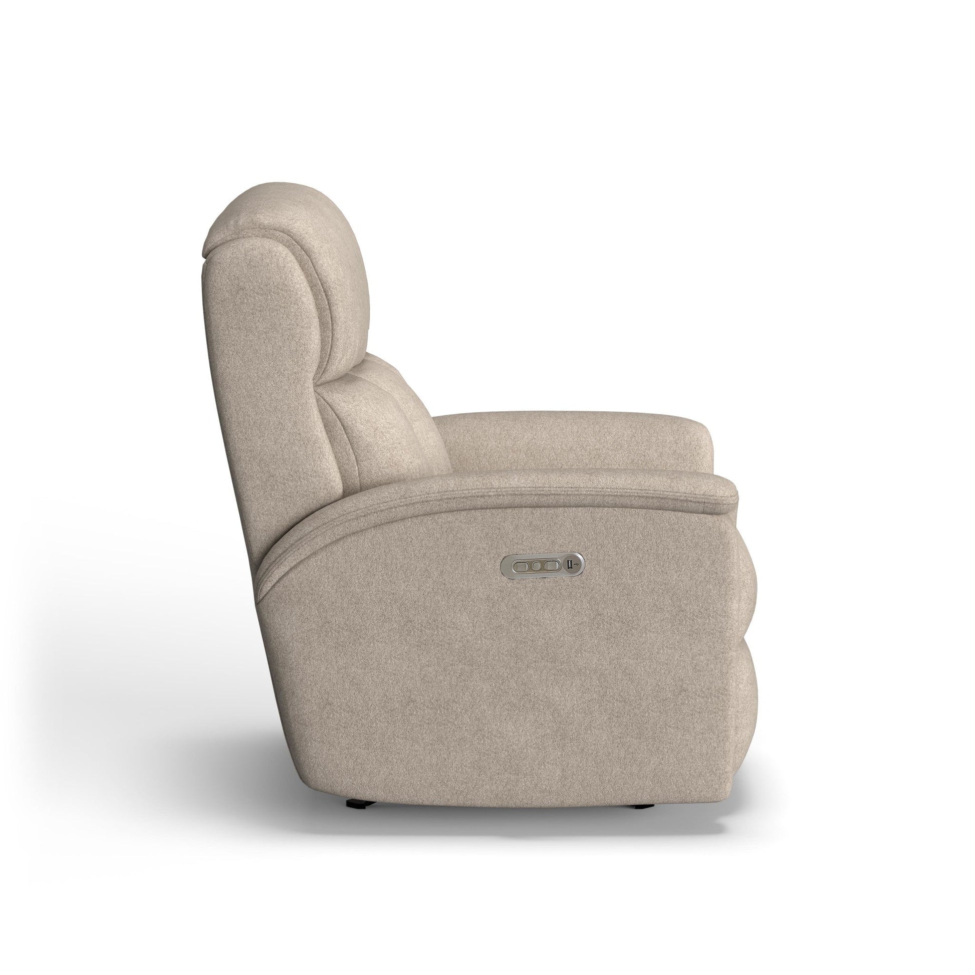Luna features a divided back cushion and a fully padded footrest that provide great comfort. Recessed back wings and unique pullover arm pads add luxury and style to its design. Puckered stitching enhances its style and adds flair to Luna’s appealing profile. A power reclining mechanism lets you change angles effortlessly from an upright to a fully reclined position, and a dual power button allows you to independently adjust the headrest for custom relaxation.
