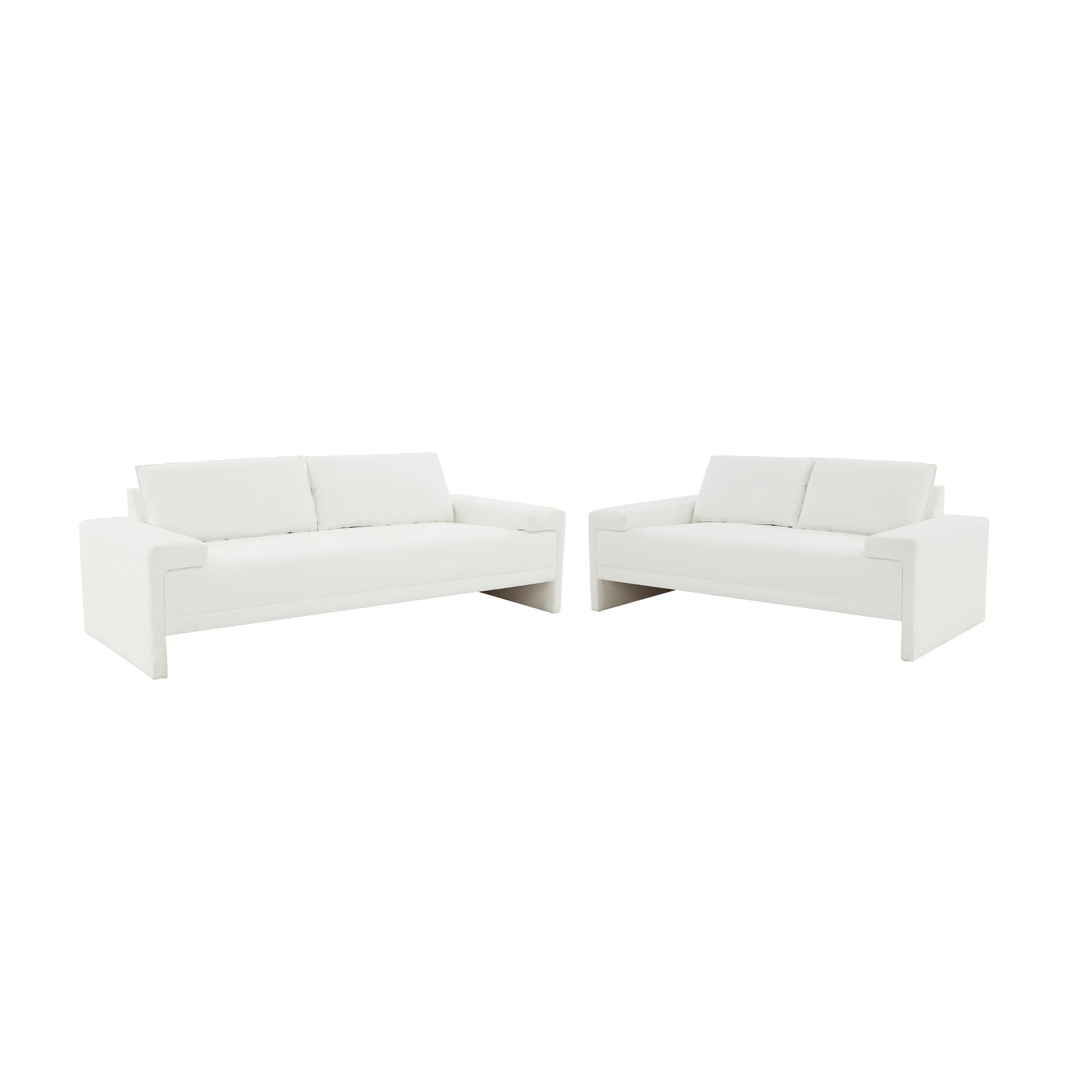 Designed for the modern home, the Maeve Collection is made for easy comfort. With a comfortable bench seat between low, wide arms, the Maeve Pearl White Loveseat is great for both everyday lounging and entertaining guests. Upholstered in a durable pearl white LiveSmart(TM) performance fabric, this loveseat is the perfect addition to your home.