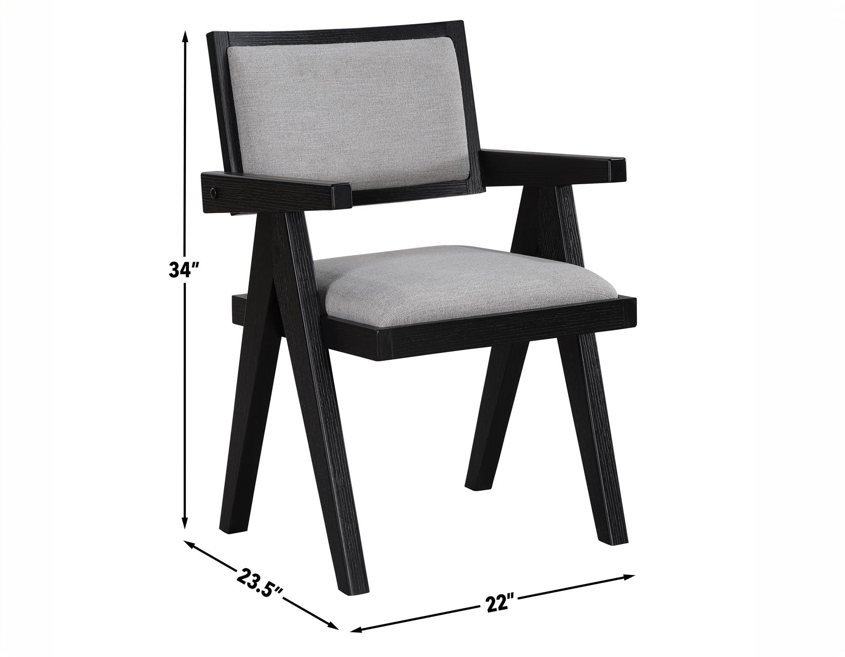 Modern styling meets unparalleled comfort in the Magnolia Arm Chair. A solid wood frame supports a unique design that combines angular lines with an ergonomically shaped back support for a comfortable and stylish seat. The linen-look polyester cover makes cleaning a breeze and the solid wood frame finished in a lustrous black makes for a durable chair that will stand the test of time.