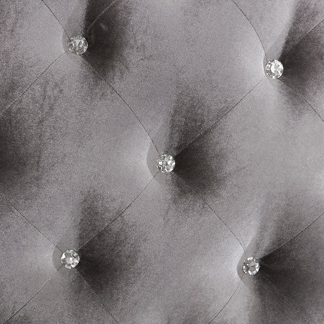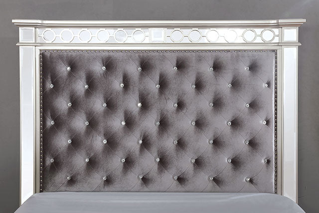 The exquisite details make up this stunning glam collection. Circular motifs are found all over the set, with the headboard and footboard featuring padded, tufted velvet-like fabric and crystal-like acrylic buttons. Never mind the copious amount of mirror accents on this piece either—it works beautifully in complementing the luxurious feel of the set.