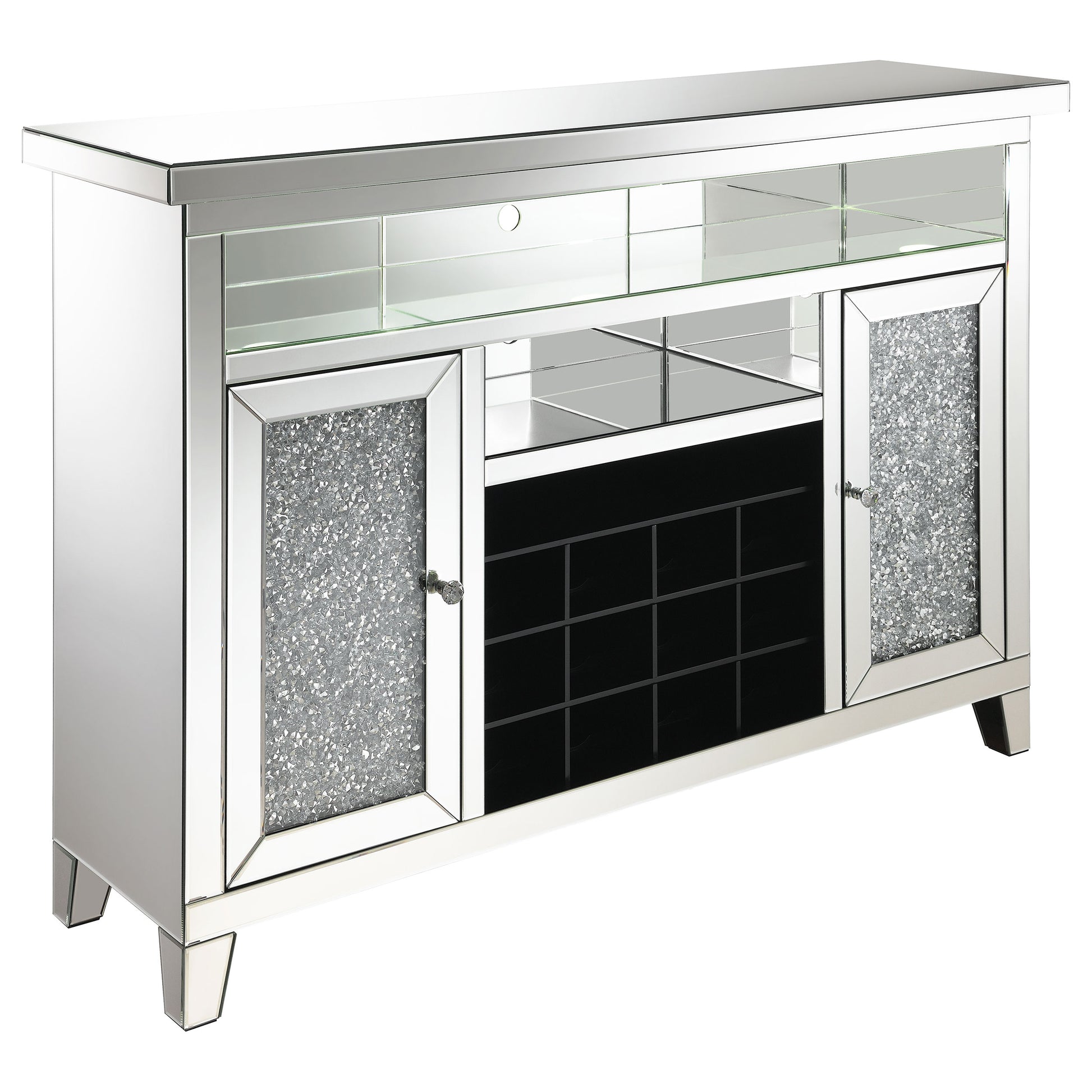 Melinda 2-door LED Mirrored Wine Storage Bar Cabinet Silver