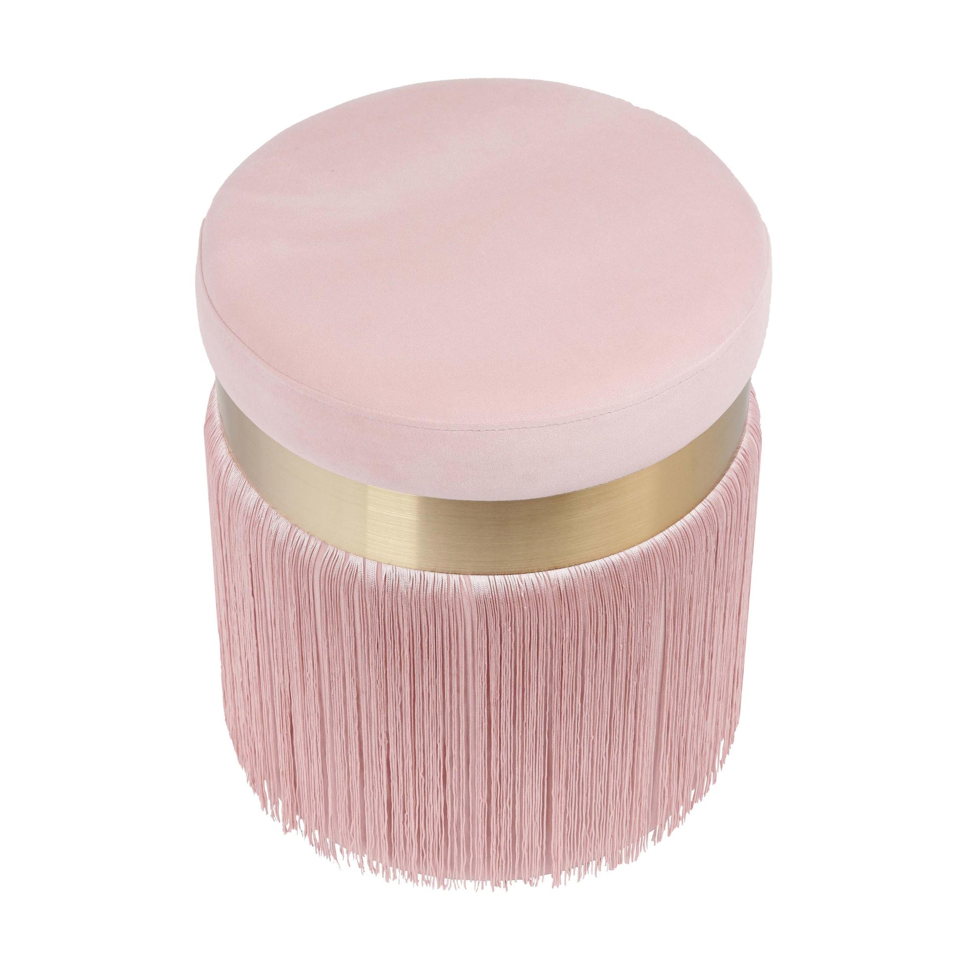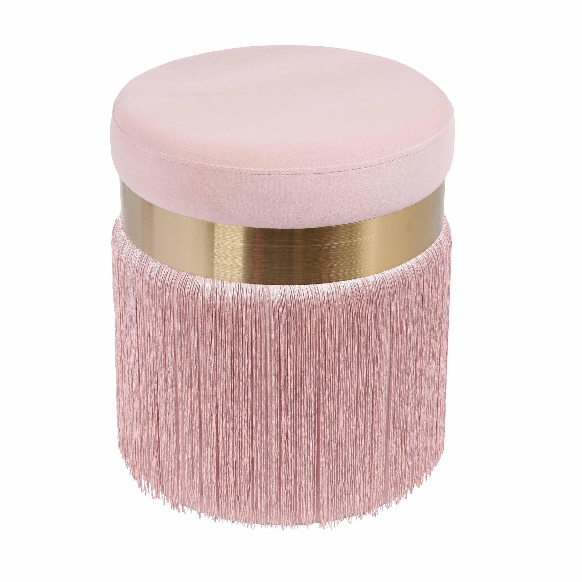 In true grand millennial style, the Melody ottoman takes the granny chic look to a whole new level. We love how soft velvet, brushed brass and a luxurious fringe pair together. Available in black, blush and cream.