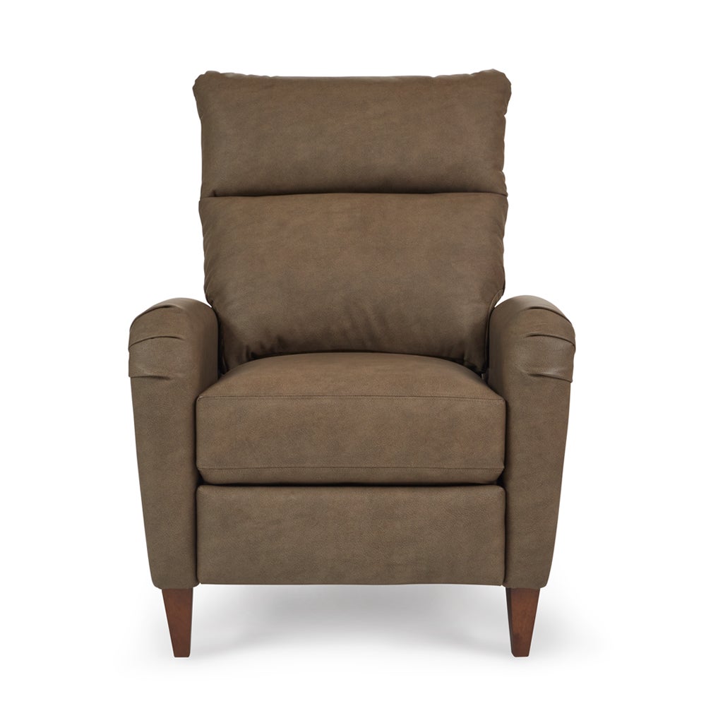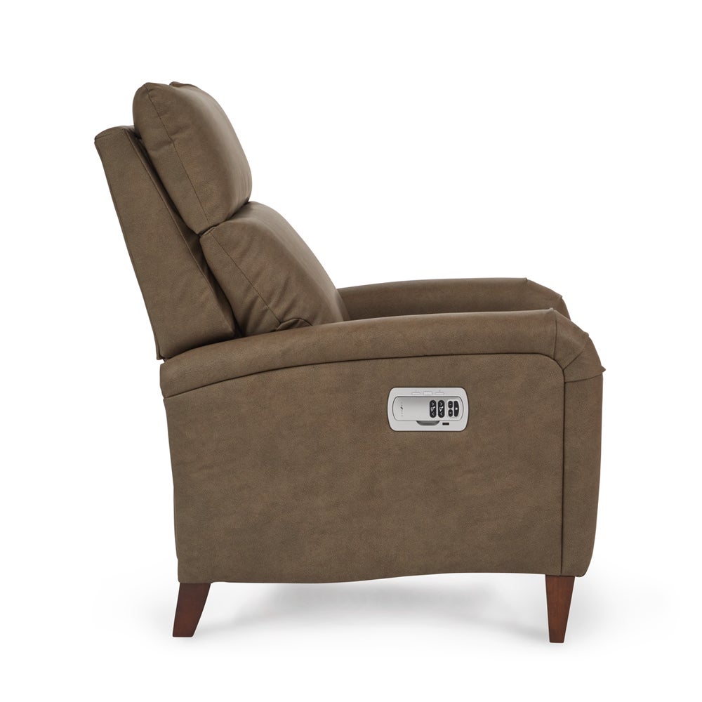 The Mercer High Leg Power Recliner with Headrest offers a casual slant on a classic design with head-to-toe power-adjustable comfort in a smaller size. The tall, plush back, crisp box-border seat cushion and tailored rolled arms are cozy…and so chic!