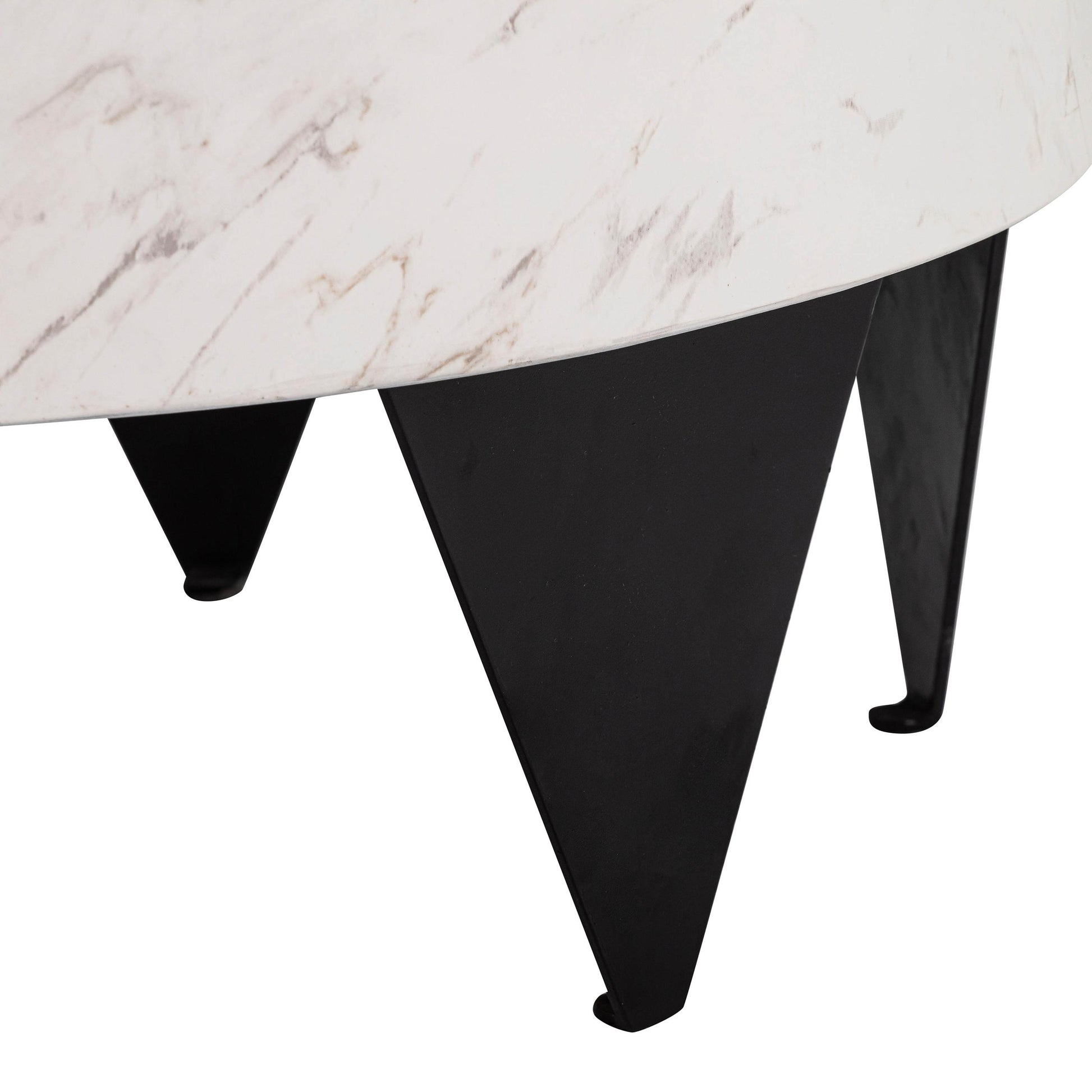 The unique Mimi Table is perched on V-shaped black iron legs with a swirling white marble surface. This coffee table will no doubt deliver a compelling balance of refinement and eccentricity to your living room!