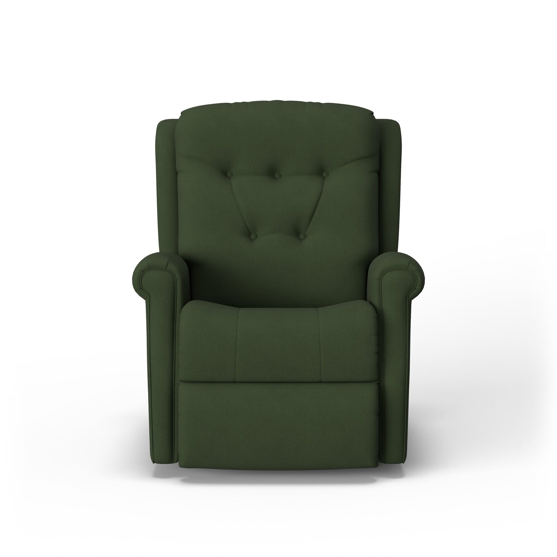 Minnie is a traditional recliner with fresh and casual features. Its set-back rounded arms are accented in the front with welt cording. The fully padded footrest and button-tufted back cushion add comfort and style to this timeless piece. A smooth reclining mechanism lets you change angles effortlessly from an upright to a fully reclined position.