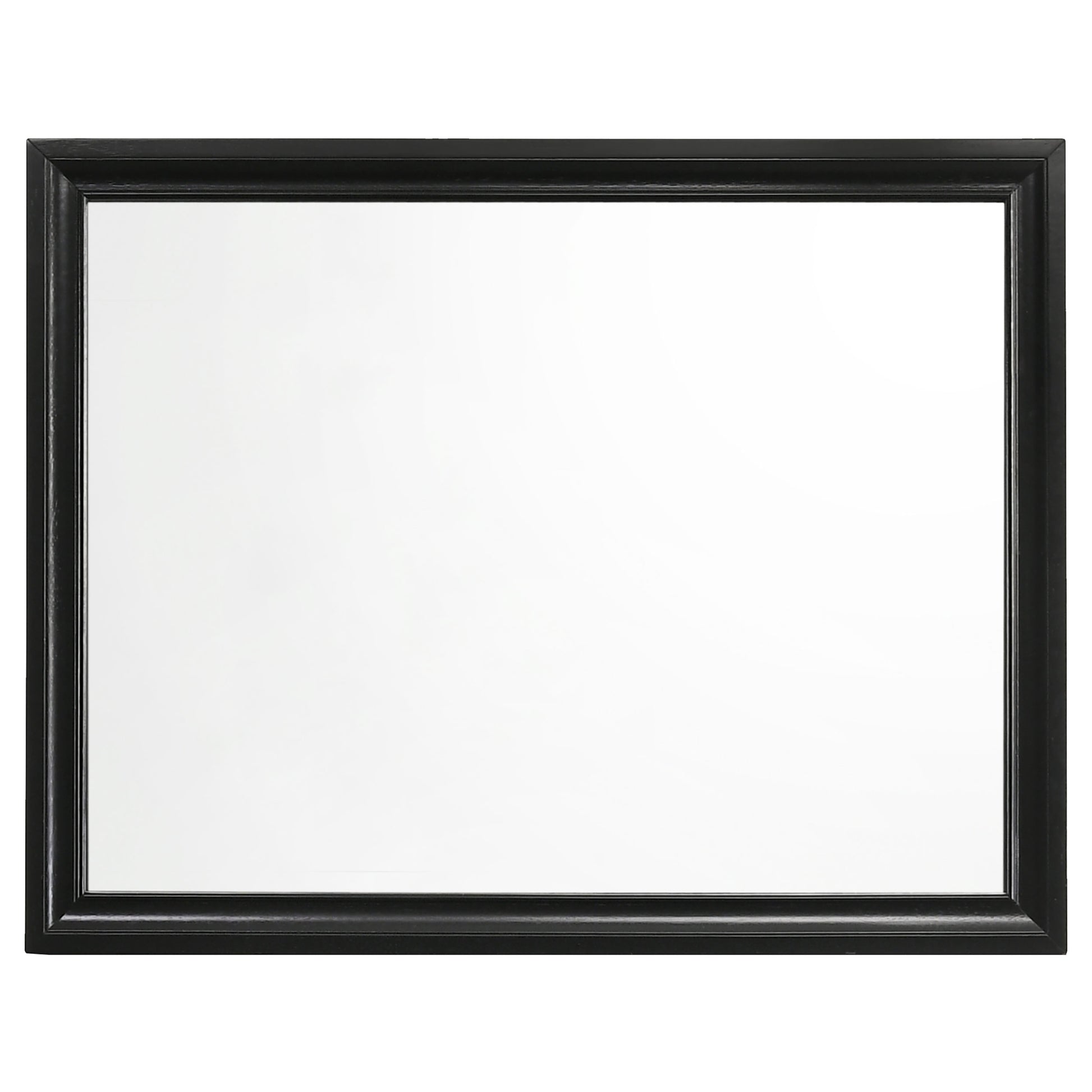 Glittering trim and a black finish create a sense of sophistication for a four-piece modern bedroom set. Designed to make a statement, the set focuses on a bed that boasts a crisp, clean-lined silhouette that pairs a rectangular headboard with padded black upholstery. Glittering diamond-like trim adorns the head and footboards of the bed and makes a statement on both the nightstand and dresser. Drawers are accentuated with jewelry inspired bar pulls that add to a gleaming presentation. Bracket feet complete the look of each piece in this set, offering a touch of timeless character and subtle movement.