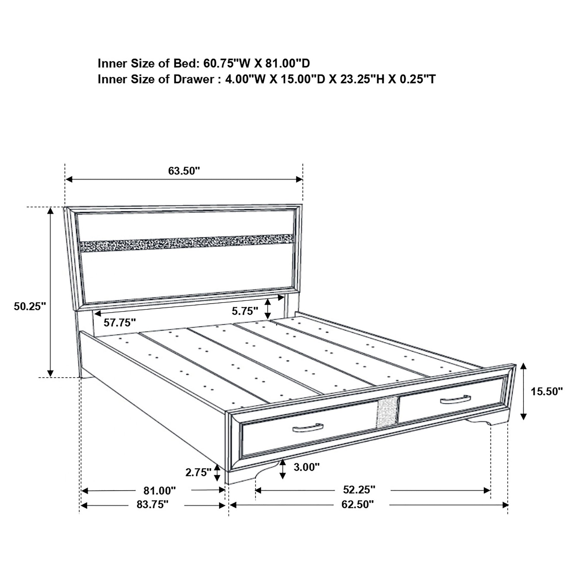 • Storage panel bed with integrated drawers in footboard design