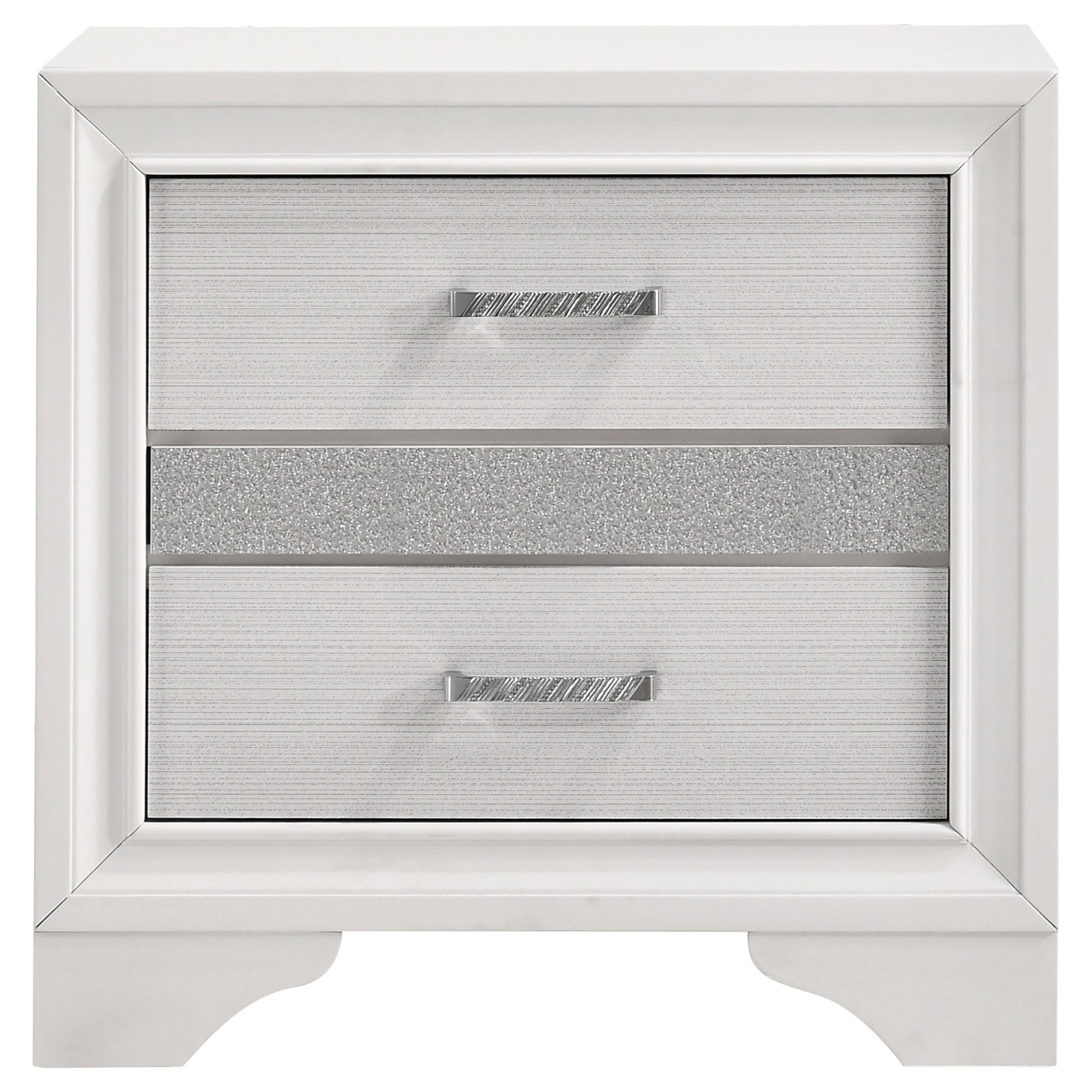 • Crystal drawer pulls and glitter accents enhance the glam aesthetic