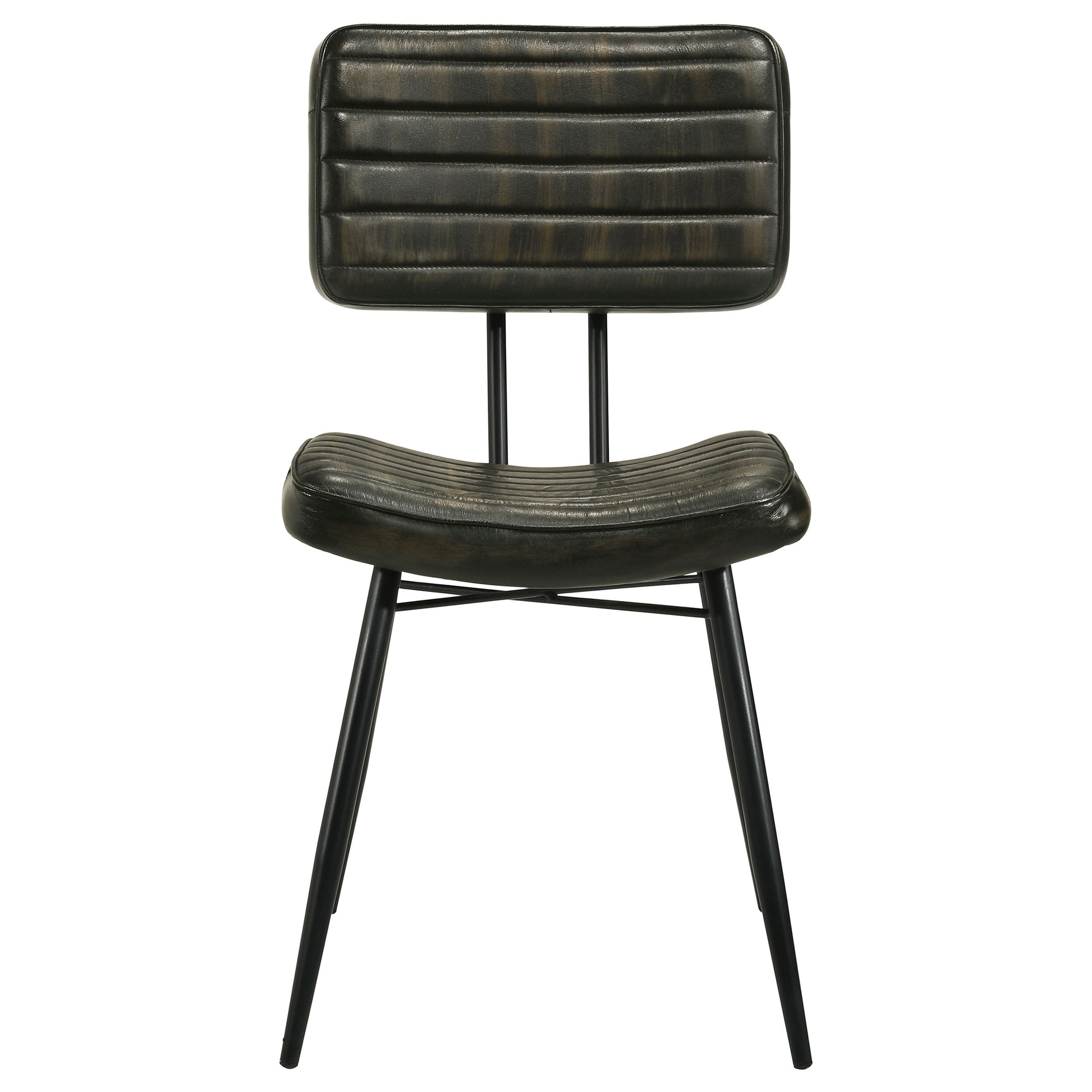 • Flared and tapered metal legs in a deep black finish offer sturdy support