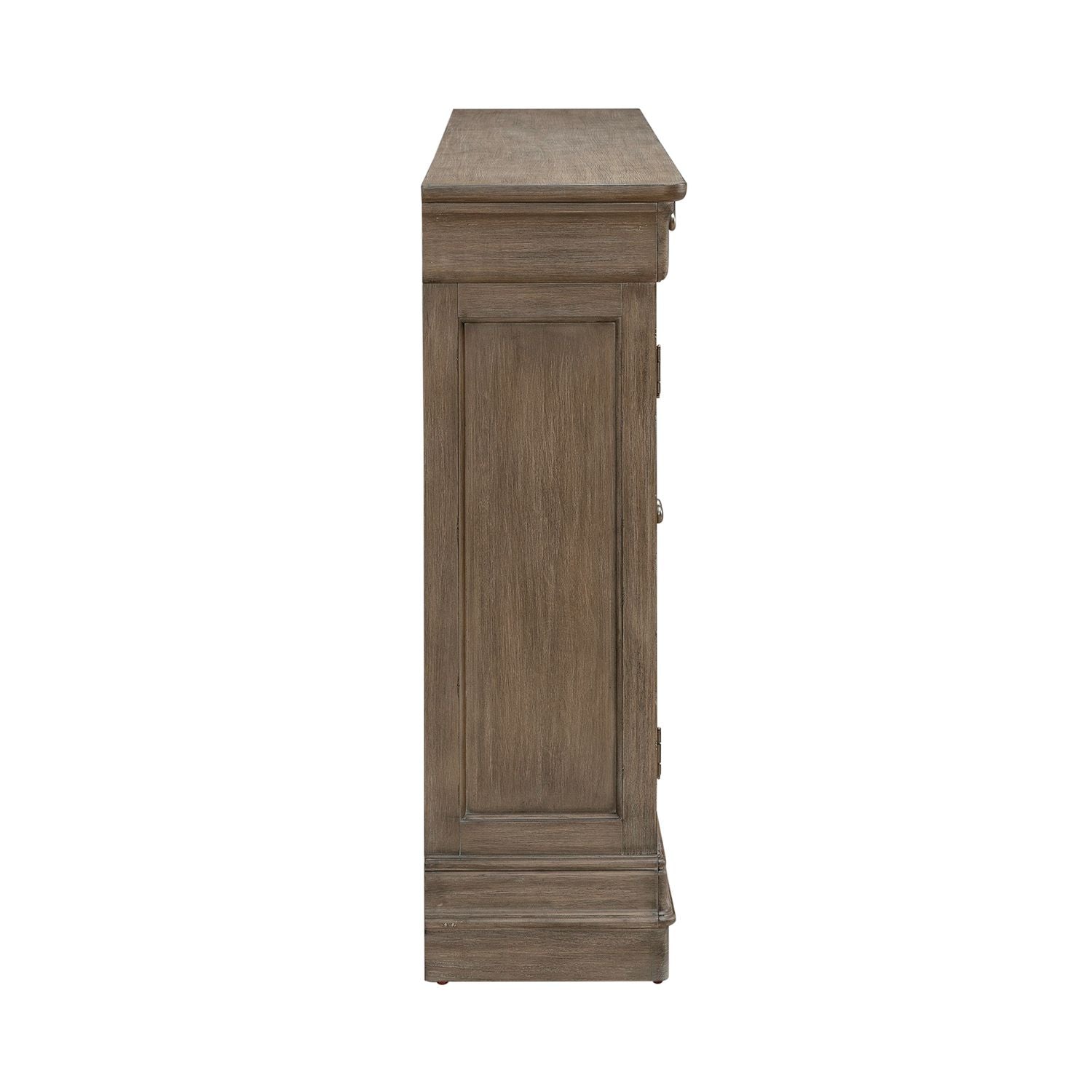 Turn an otherwise empty space into something extraordinary with the Morrow Bay hall buffet. Crafted with excellence using acacia solids and birch veneers, this piece features a Wire-Brushed Sandy Taupe finish. There are three full extension drawers that are felt-lined to protect your valuables. Four doors have a solid wood frame and feature peg accents for a craftsman’s feel. Behind each set of doors are two adjustable shelves. The Antique Pewter knob hardware on the drawers and doors give off an eclectic vibe. With the versatility of the Morrow Bay hall buffet, it is sure to command attention in any space.