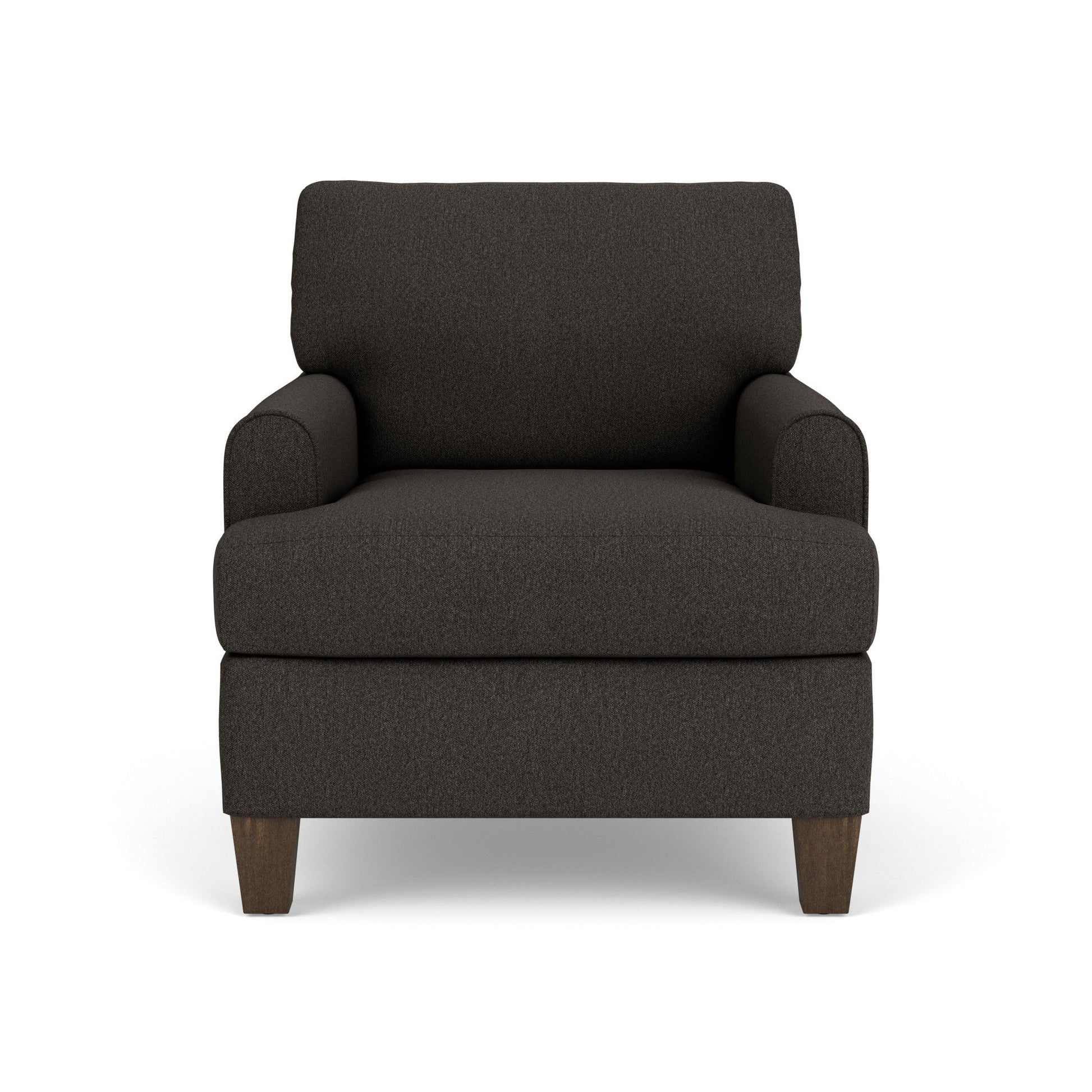 Spirit Meets Style The Moxy chair ensures you never have to settle for anything other than the perfect design, no matter your style. Rounded mailbox arms provide a clean look. Square tapered legs come in your choice of three distinct wood finishes—Florentine, Valencia, or Urban Renewal—to complement any décor. The removable T-shaped seat cushion offers a distinctive look and added comfort. Sink into the ideal level of support with your choice of our luxury or plush cushion. Complete the look and showcase your lifestyle with hundreds of different fabric choices, including high-performance and sustainable textiles. Superior frame construction and our patented C-Flex Blue Steel Spring™ ensures your Moxy can be enjoyed for years to come. Rounded mailbox arms provide a contemporary look Off-the-floor square tapered legs come in Valencia, Florentine, or Urban Renewal finishes Semi-attached back cushion remains fixed in place, ensuring a clean look and comfortable feel Removable seat cushion in a distinctive T-shaped style Sit comfortably with a luxury cushion featuring a moderately firm polyurethane foam core wrapped with a soft fiber wrap, or select a plush cushion featuring a high-resiliency polyurethane foam core wrapped with a soft fiber wrap for added support Built to last with the Flexsteel patented C-Flex Blue Steel Spring™ that provides an elevated level of support Available in hundreds of fabric choices, including those with robust performance and sustainability characteristics Model Number: 5019-10 Dimensions 37H x 33W x 39L