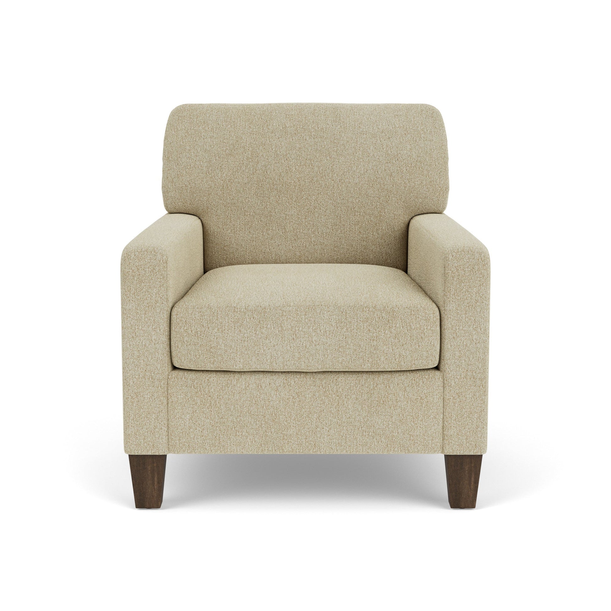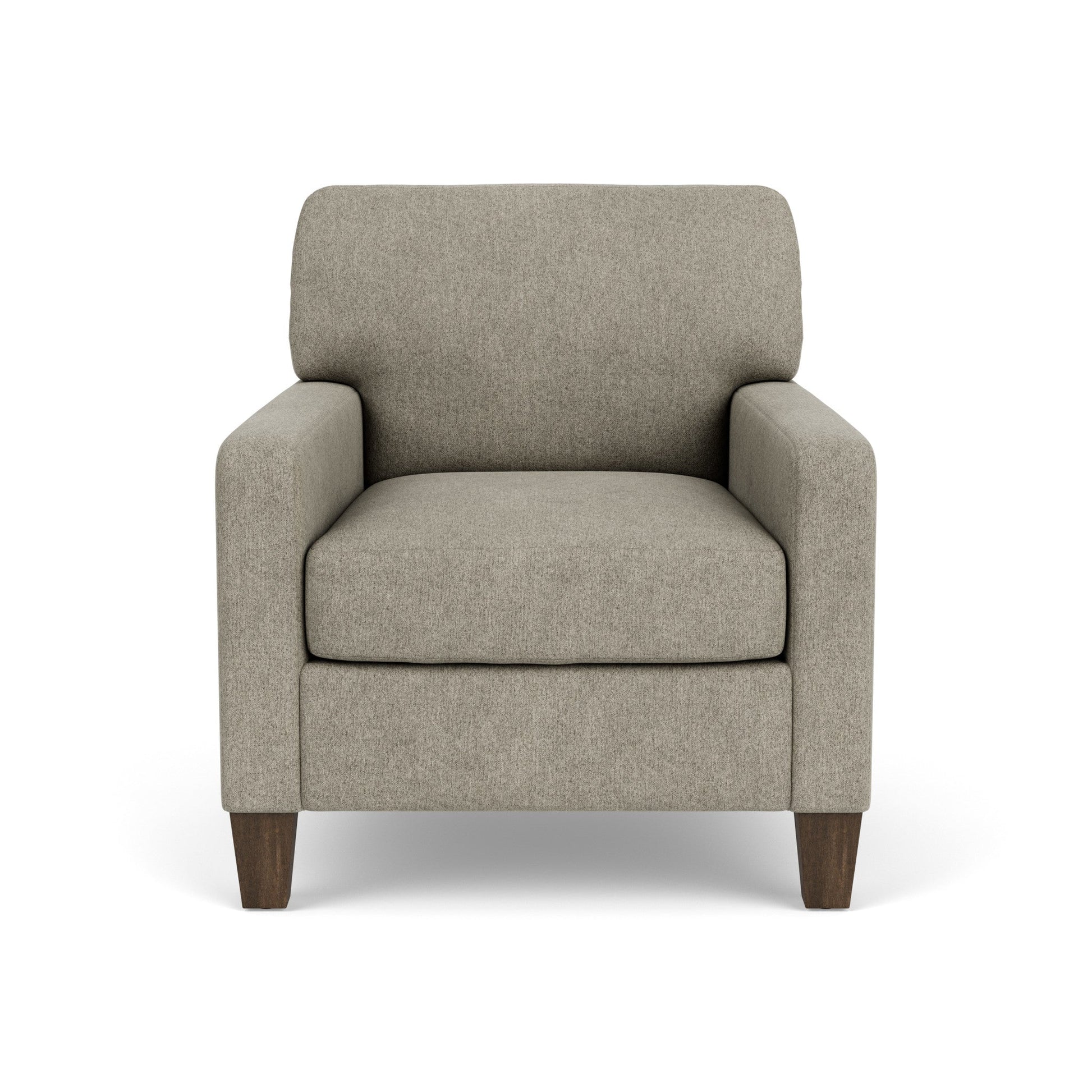 Spirit Meets Style The Moxy chair ensures you never have to settle for anything other than the perfect design, no matter your style. Straight track arms provide a clean look. Square tapered legs come in your choice of three distinct wood finishes—Florentine, Valencia, or Urban Renewal—to complement any décor. The removable square, inside seat cushion style offers you the flexibility to rotate for added longevity. Sink into the ideal level of support with your choice of our luxury or plush cushion. Complete the look and showcase your lifestyle with hundreds of different fabric choices, including high-performance and sustainable textiles. Superior frame construction and our patented C-Flex Blue Steel Spring™ ensures your Moxy can be enjoyed for years to come. Straight track arms provide a contemporary look Off-the-floor square tapered legs come in Valencia, Florentine, or Urban Renewal finishes Semi-attached back cushion remains fixed in place, ensuring a clean look and comfortable feel Removable seat cushion in a classic square style Sit comfortably with a luxury cushion featuring a moderately firm polyurethane foam core wrapped with a soft fiber wrap, or select a plush cushion featuring a high-resiliency polyurethane foam core wrapped with a soft fiber wrap for added support Built to last with the Flexsteel patented C-Flex Blue Steel Spring™ that provides an elevated level of support Available in hundreds of fabric choices, including those with robust performance and sustainability characteristics Model Number: 5035-10 Dimensions 37H x 34W x 39L