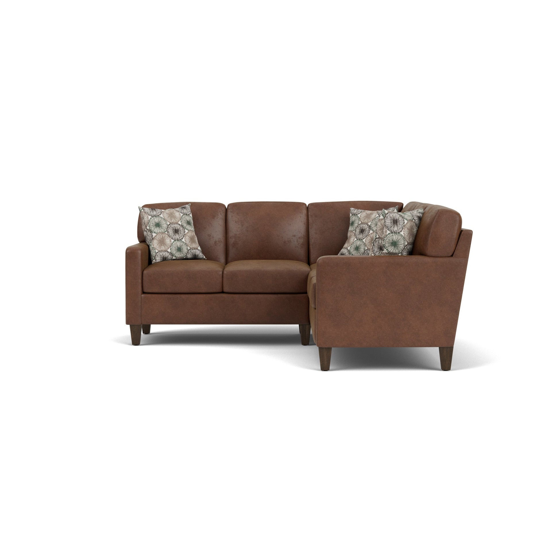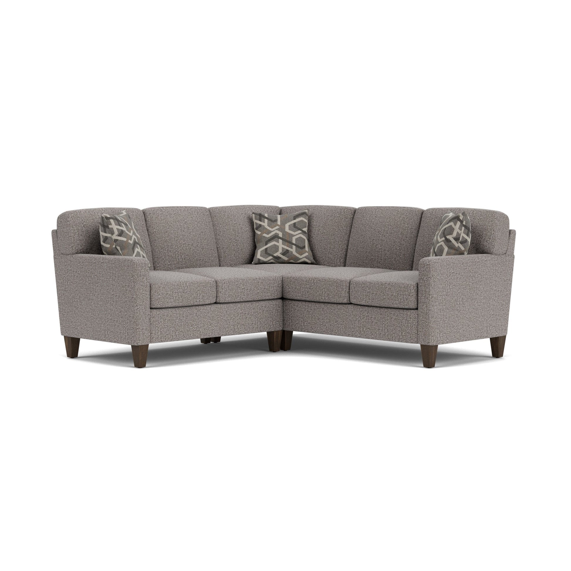 Spirit Meets Style Cozy up with the family or claim it all for yourself with the Moxy sectional that lets you personalize details for the perfect look and feel. Sleek track arms and a square tapered leg provide a contemporary vibe. This sectional is built with superior frame construction and our patented Blue Steel Spring, ensuring your Moxy can be enjoyed for years to come. Create a custom configuration just for your home with five components to choose from. Then, complete the look and showcase your lifestyle with hundreds of different fabric choices, including high-performance and sustainable textiles. Choose from five sectional components to build a custom configuration Straight track arms and square tapered legs provide a contemporary look Semi-attached back cushions remain fixed in place, ensuring a clean look and comfortable feel Removable seat cushions in a classic square style Built to last with the Flexsteel patented C-Flex Blue Steel Spring that provides an elevated level of support Available in hundreds of fabric choices, including those with robust performance and sustainability characteristics Comes with accent pillows to enhance comfort and style Model Number: 5035-SECT Dimensions