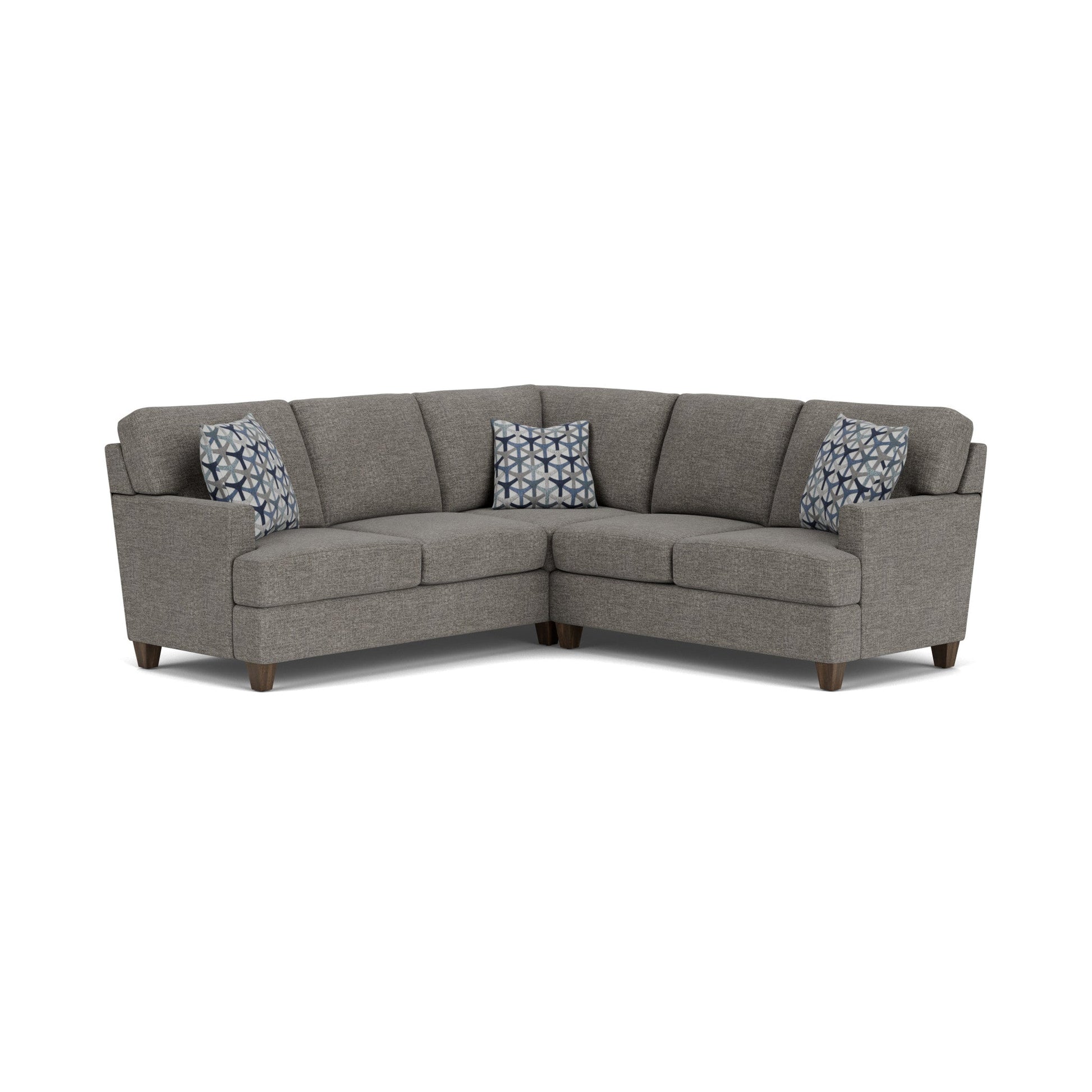 Spirit Meets Style Cozy up with the family or claim it all for yourself with the Moxy sectional that lets you personalize details for the perfect look and feel. Sleek track arms and a square tapered leg provide a contemporary vibe. This sectional is built with superior frame construction and our patented Blue Steel Spring, ensuring your Moxy can be enjoyed for years to come. Create a custom configuration just for your home with five components to choose from. Then, complete the look and showcase your lifestyle with hundreds of different fabric choices, including high-performance and sustainable textiles. Choose from five sectional components to build a custom configuration Straight track arms and square tapered legs provide a contemporary look Semi-attached back cushions remain fixed in place, ensuring a clean look and comfortable feel Removable seat cushions in a distinctive T-shaped style Built to last with the Flexsteel patented C-Flex Blue Steel Spring that provides an elevated level of support Available in hundreds of fabric choices, including those with robust performance and sustainability characteristics Comes with accent pillows to enhance comfort and style Model Number: 5015-SECT Dimensions