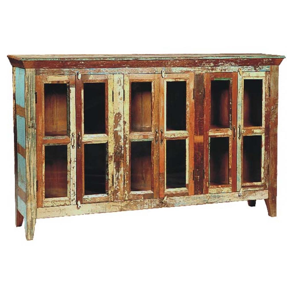 Built in reclaimed Indian hardwoods Distressed multi color paint finish Wood tone and paint color will vary