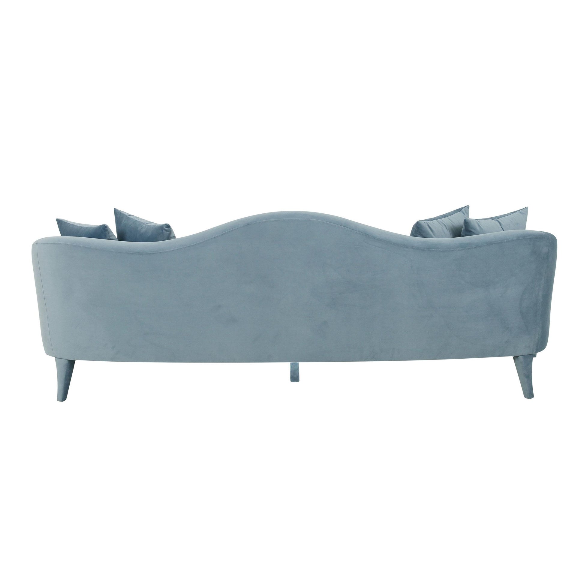 The chic Naya Sofa is an elegant piece that brings color and personality into the room. Upholstered in velvet and adorned with plush throw pillows, this sofa is a comfortable yet stylish household favorite. Available in several color options to suit your style.