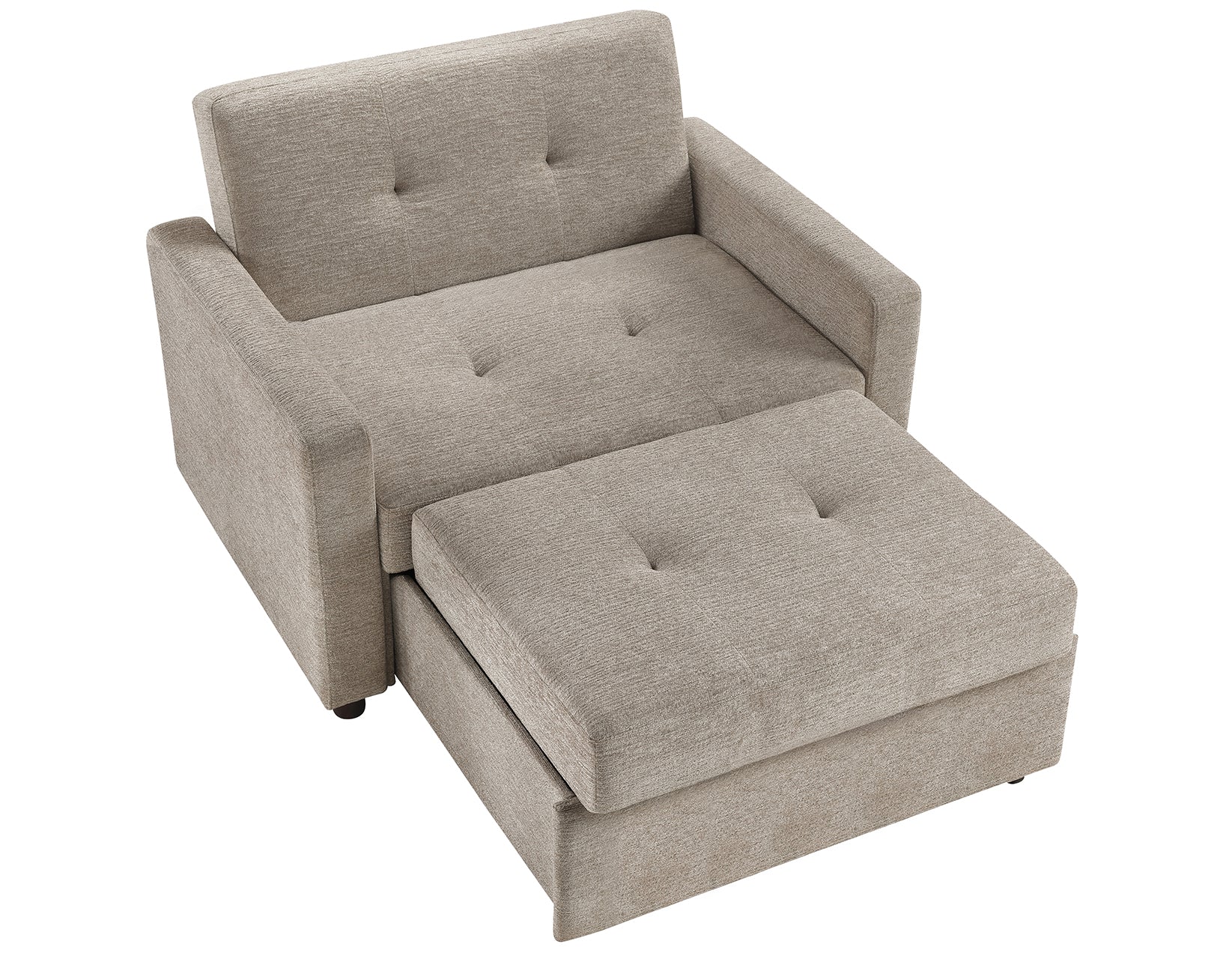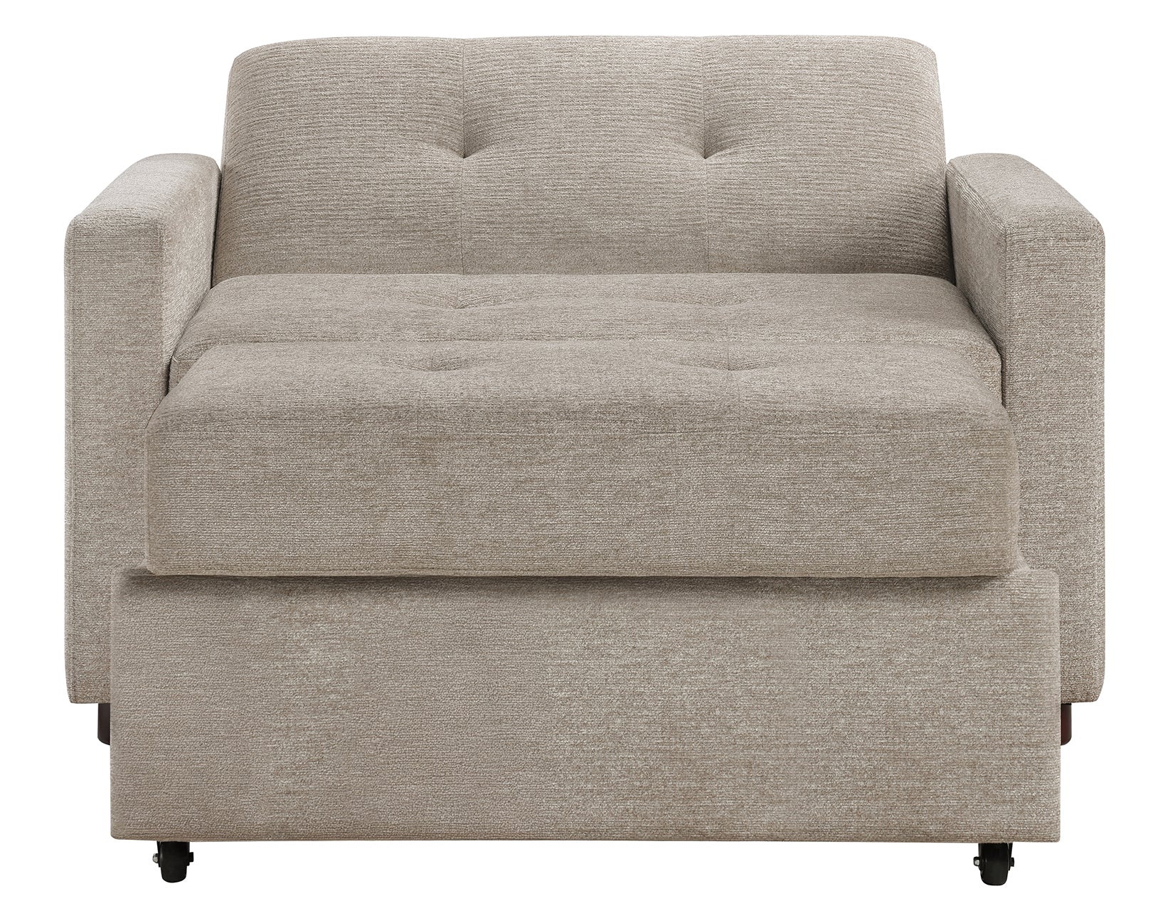 The Noah Convertible Sleeper Chair is your all-in-one comfort solution. This stylish piece functions as a cozy armchair, a reclining chaise, or a lay-flat sleep surface. With its beautiful mid-century modern design, it seamlessly enhances any room. The chair features 7-inch welted box seat cushions and soft tan chenille fabric, providing both comfort and elegance. Easily extend it into a chaise, or drop the back to create a sleep surface perfect for naps or guests. The Noah Convertible Sleeper Chair adapts to your every need.