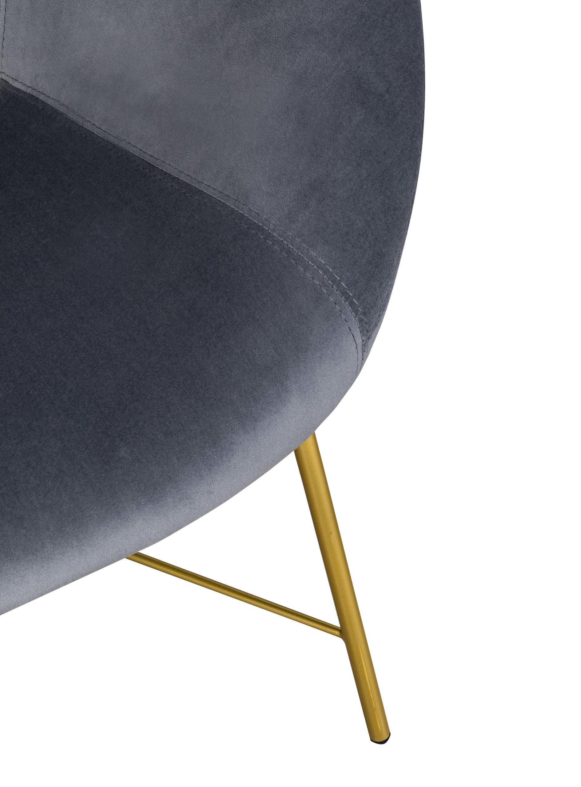 The Nolan chair has clean lines and lavish velvet upholstery. Featuring a barrel-shaped seat with a keyhole back supported by a gold iron base. Sit back and relax into the comfort of this fabulous chair.
