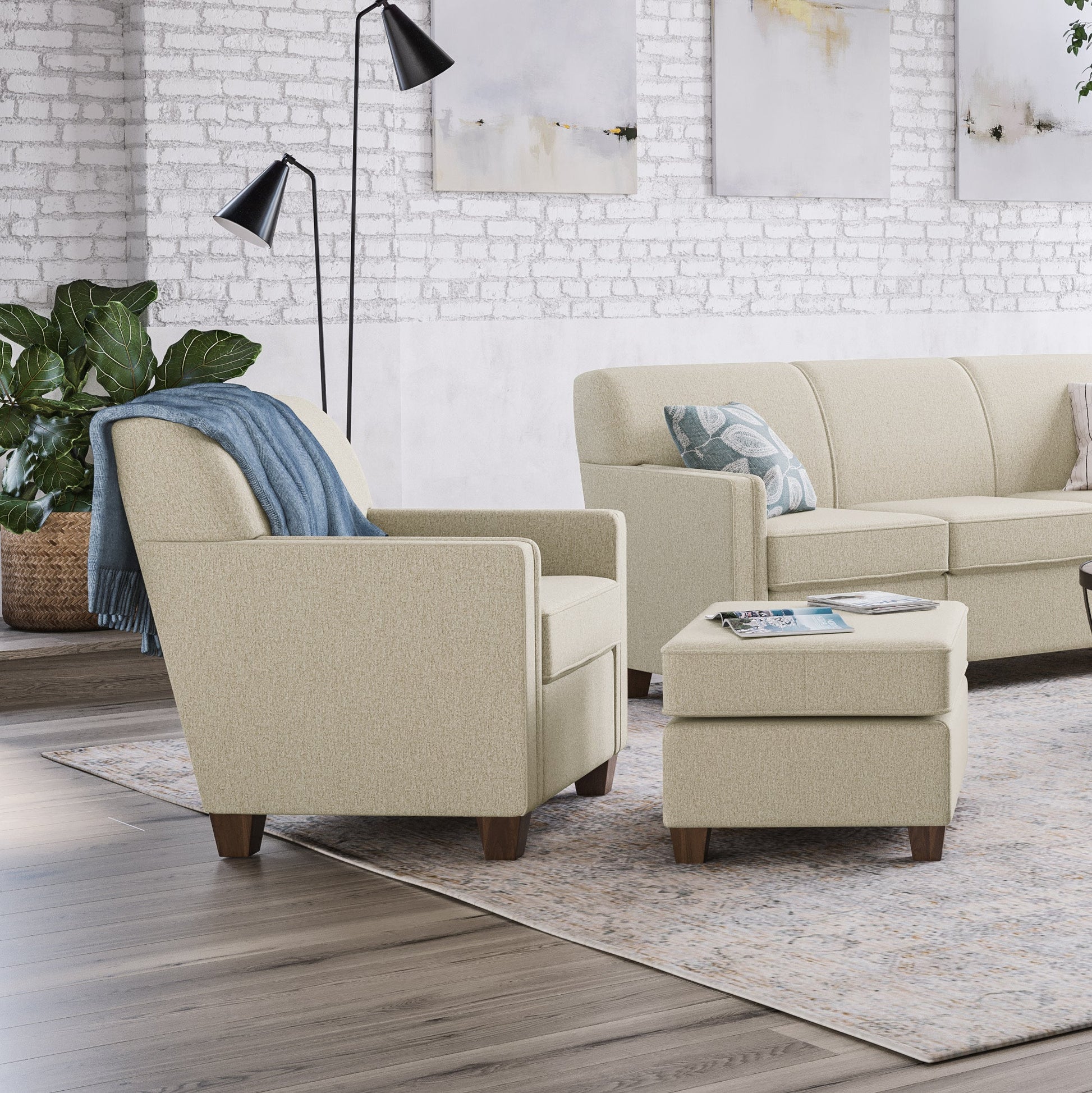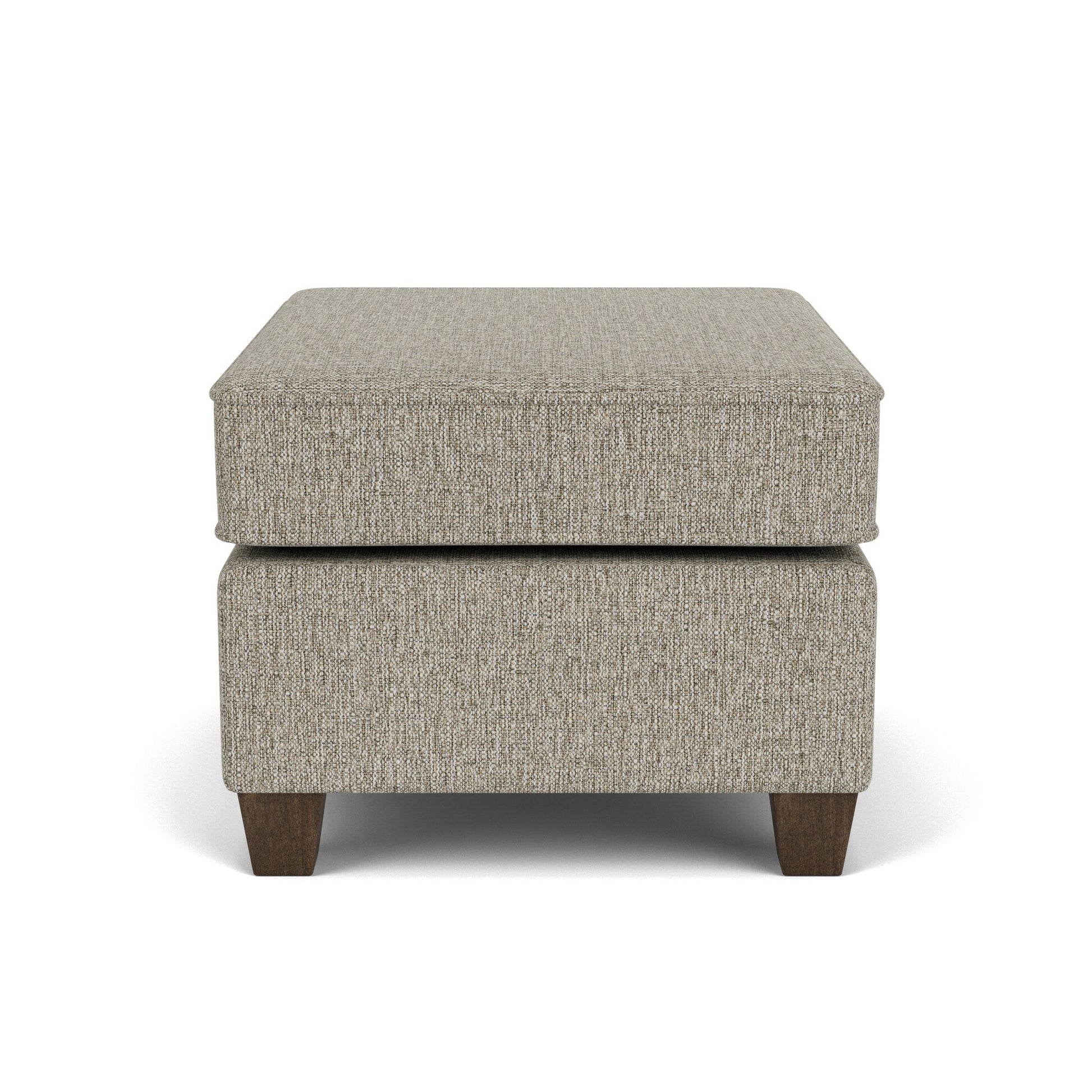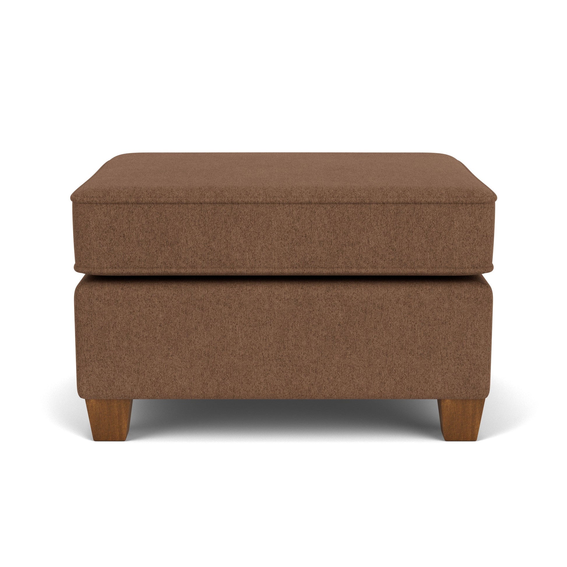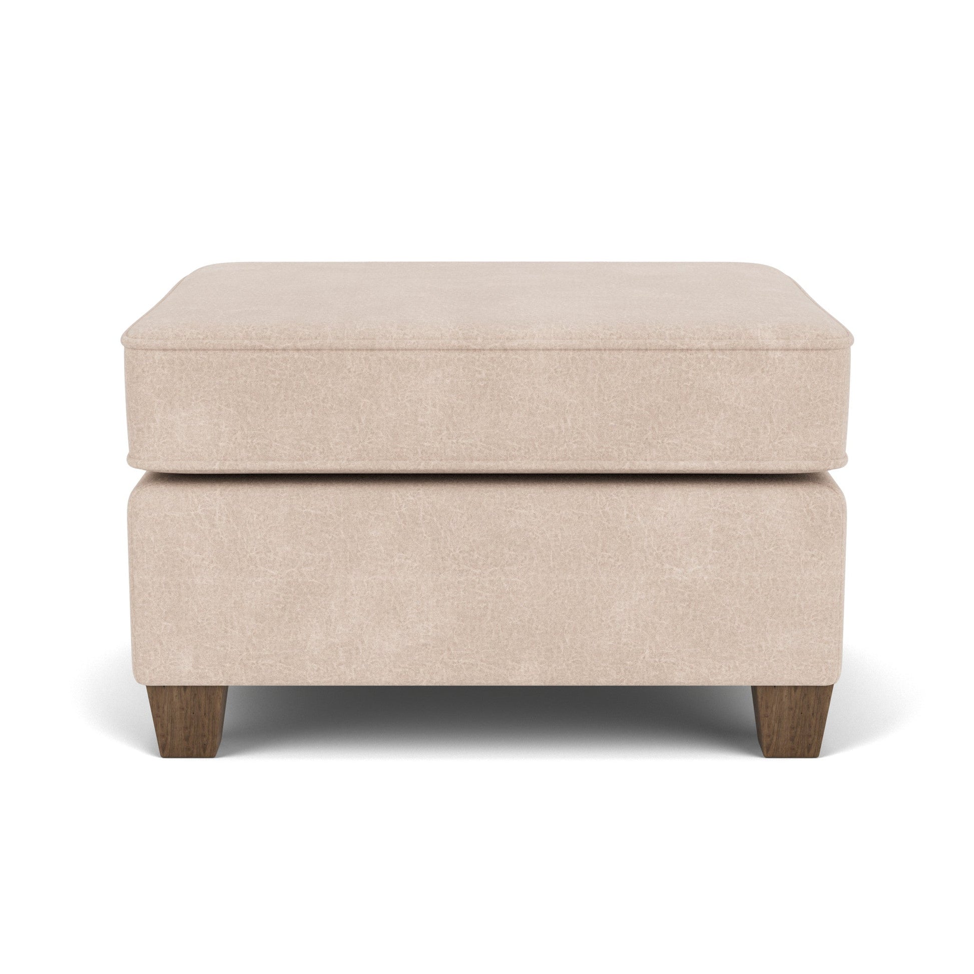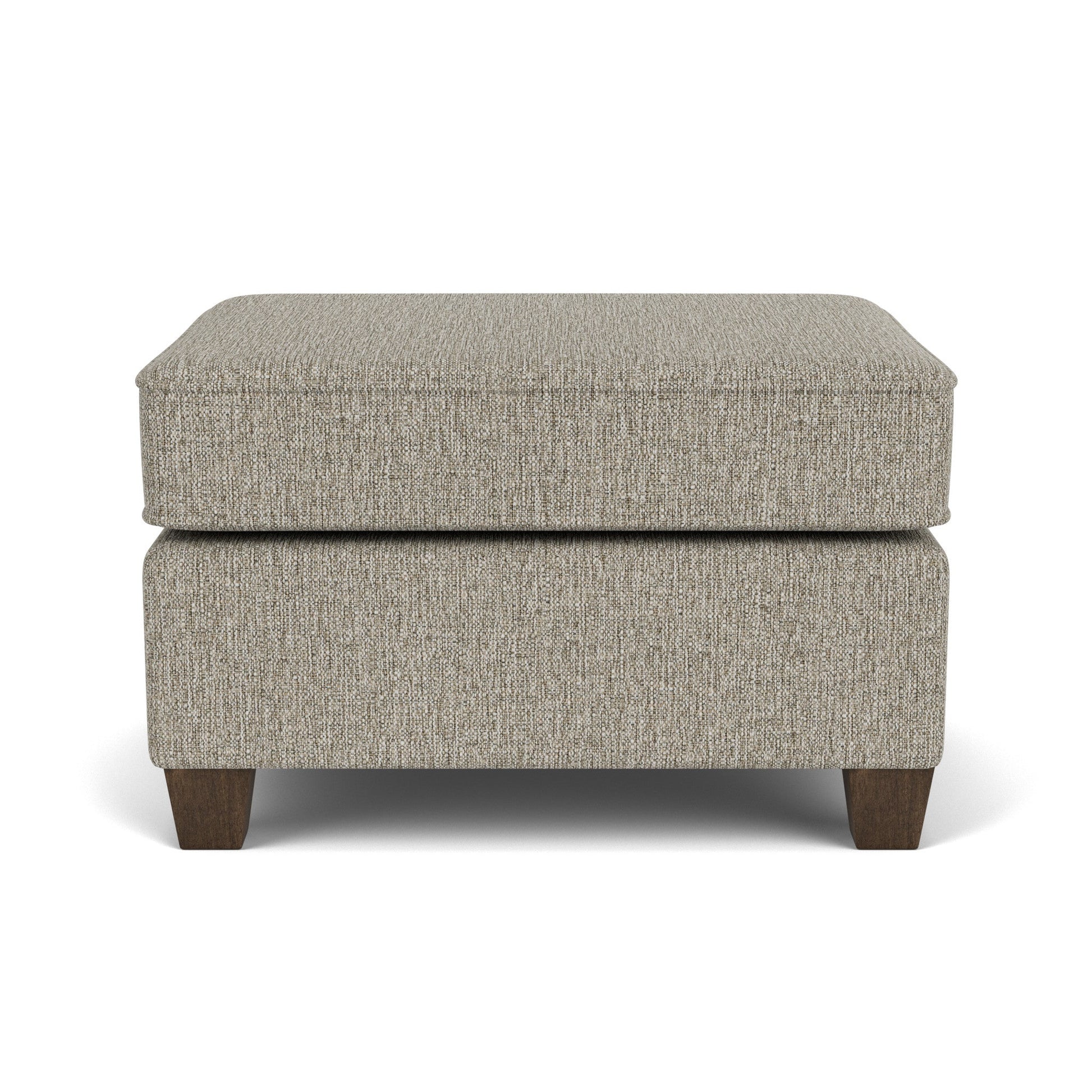 Easy Elegance Kick up your legs or use as additional guest seating with this stylish ottoman that matches perfectly with the Nora chair. Simple, clean lines, refined welt detailing, and square tapered wood legs offer a clean and tailored silhouette designed to fit in any living space. Small-scale piece perfect for compact spaces Design-forward details including refined track arms and welt trim Square tapered wood legs in attractive Florentine finish offer understated style Stocked in one neutral color for quick shipping Model Number: 5890-08 Dimensions 19H x 29W x 24L