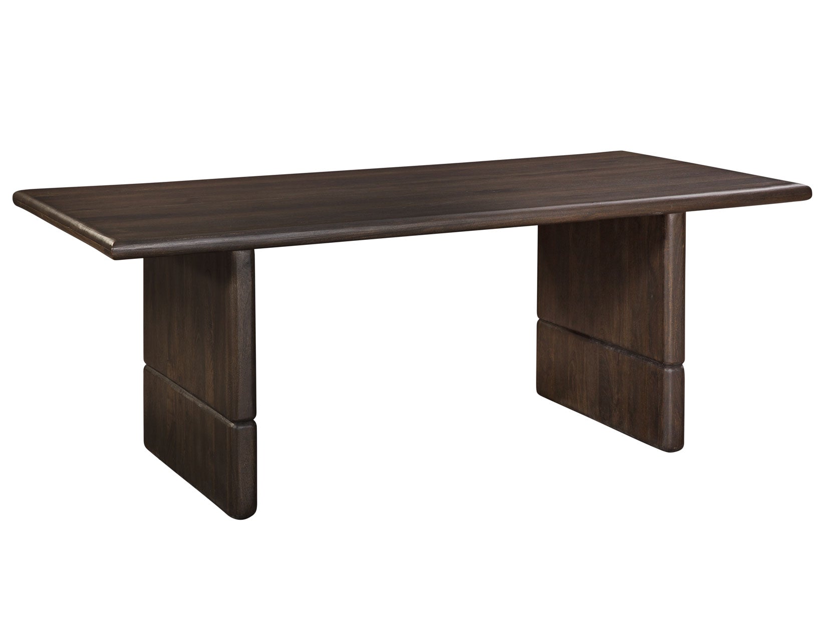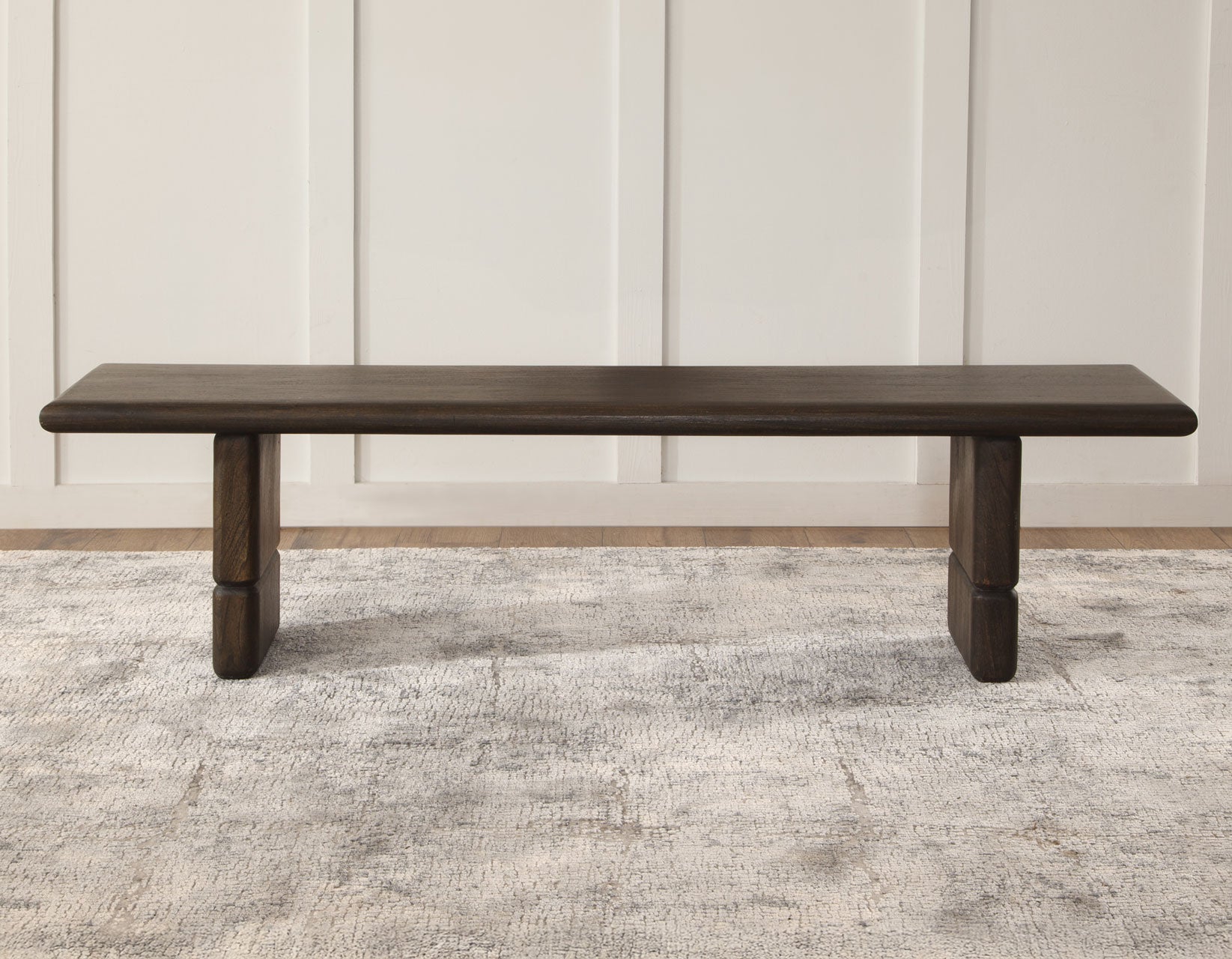 The 6-piece Norvell Dining Set combines clean lines, rich finishes, and artisan-crafted details for a timeless look. Featuring a 78″ solid wood table with a bullnose edge and notched double pedestal base, the set includes a matching bench and four comfortably cushioned side chairs. The dark espresso finish adds warmth and sophistication, while the versatile bench offers flexible seating for everyday meals or gatherings. With its balanced scale and transitional style, the Norvell set brings both function and elegance to any dining space.