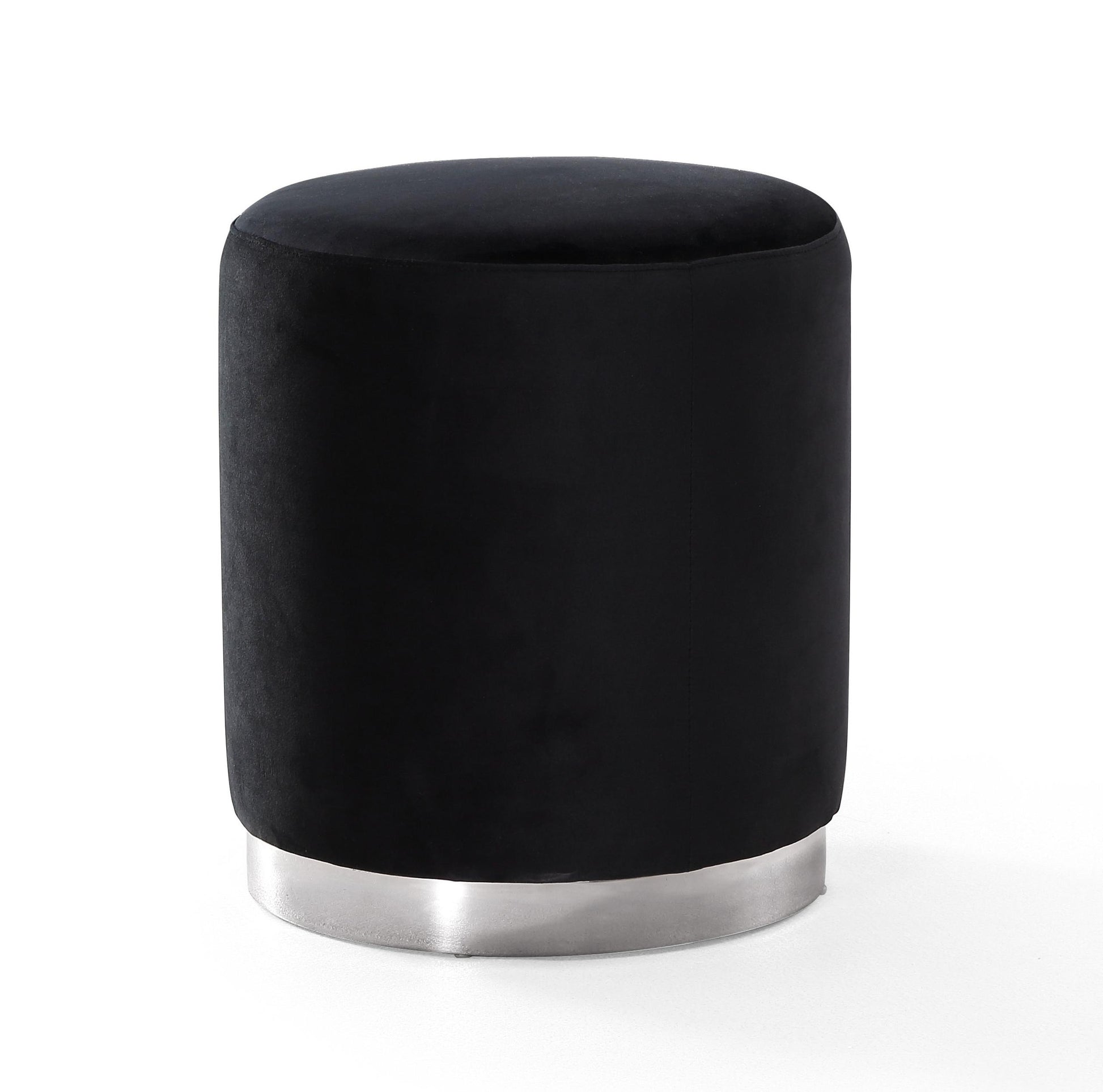 Opal Black Velvet Ottoman -Silver Base
