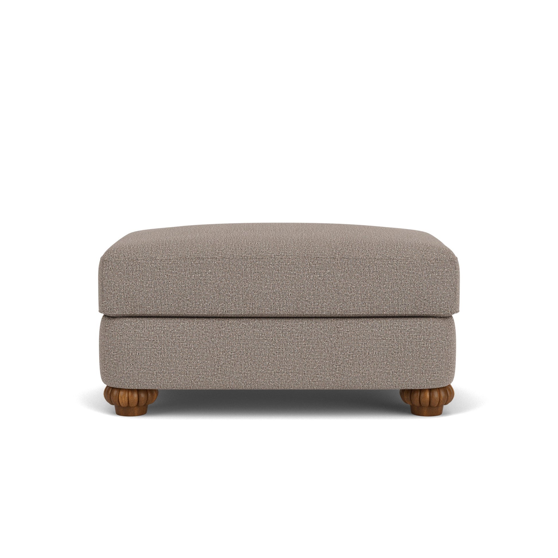 Generous proportions in an elegant design Generous padding, fluted bun feet, and optional nailhead trim add the finishing touches to the Patterson ottoman that make it a perfect match for the Patterson chair. Coordinates with the Patterson chair. Also available with nailhead trim. Model Number: 7321-08 Dimensions 19H x 37W x 23L