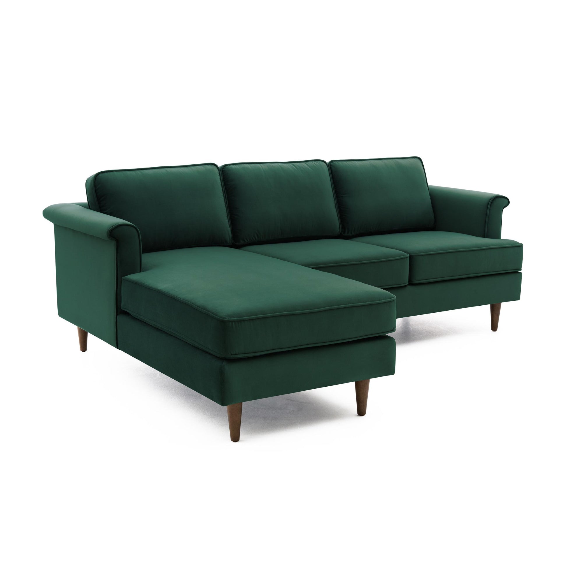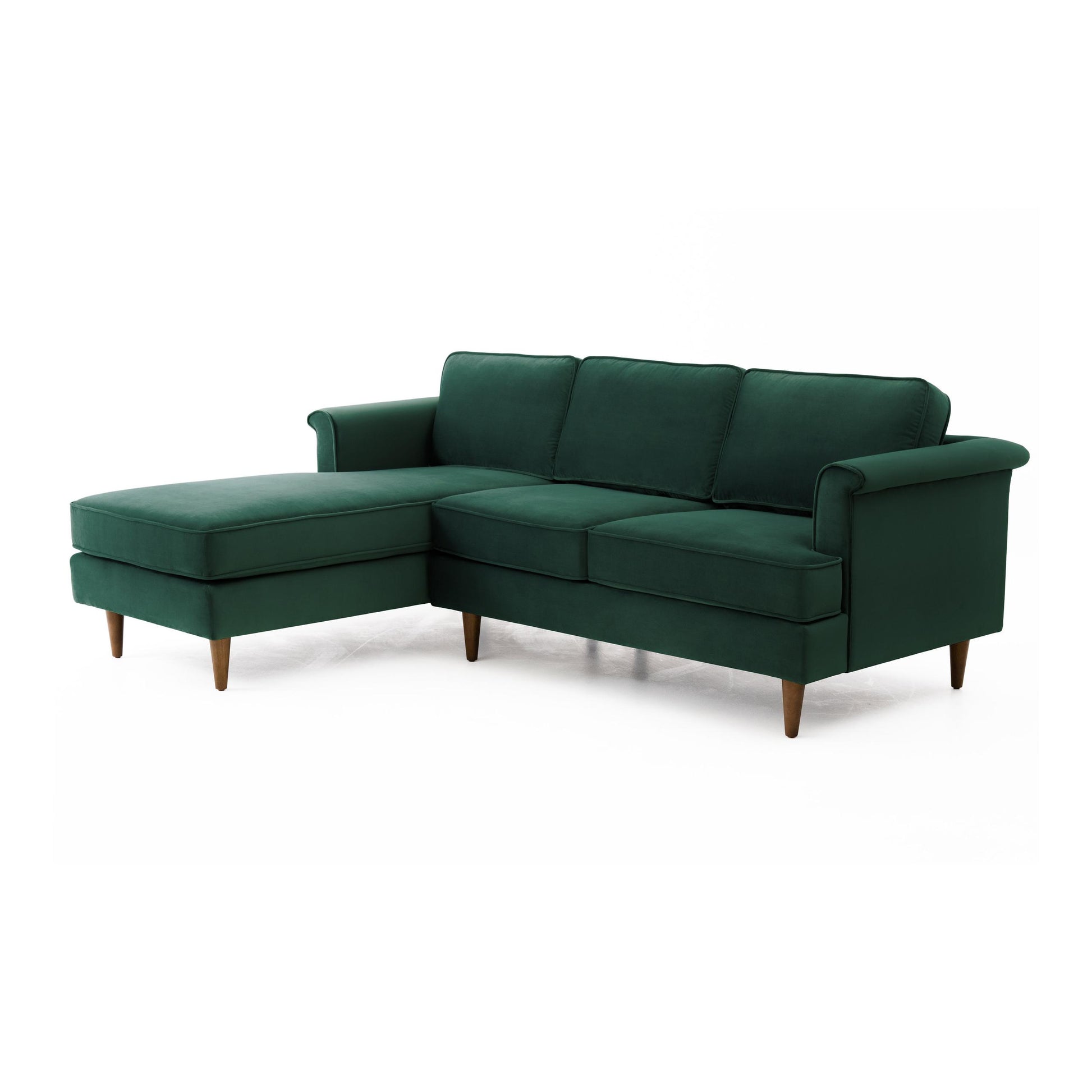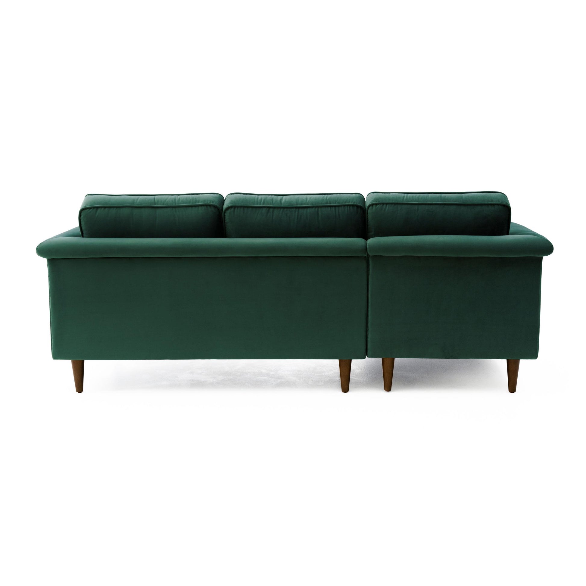 Mid-century modern is a classic design and the Porter sectional reinforces its allure. It offers timelessness and comfort with its removable cushions, sumptuous velvet upholstery, sturdy birch wood frame, and elegant rolled arms. This splendid sectional is available in grey or forest green options and either RAF or LAF configuration.