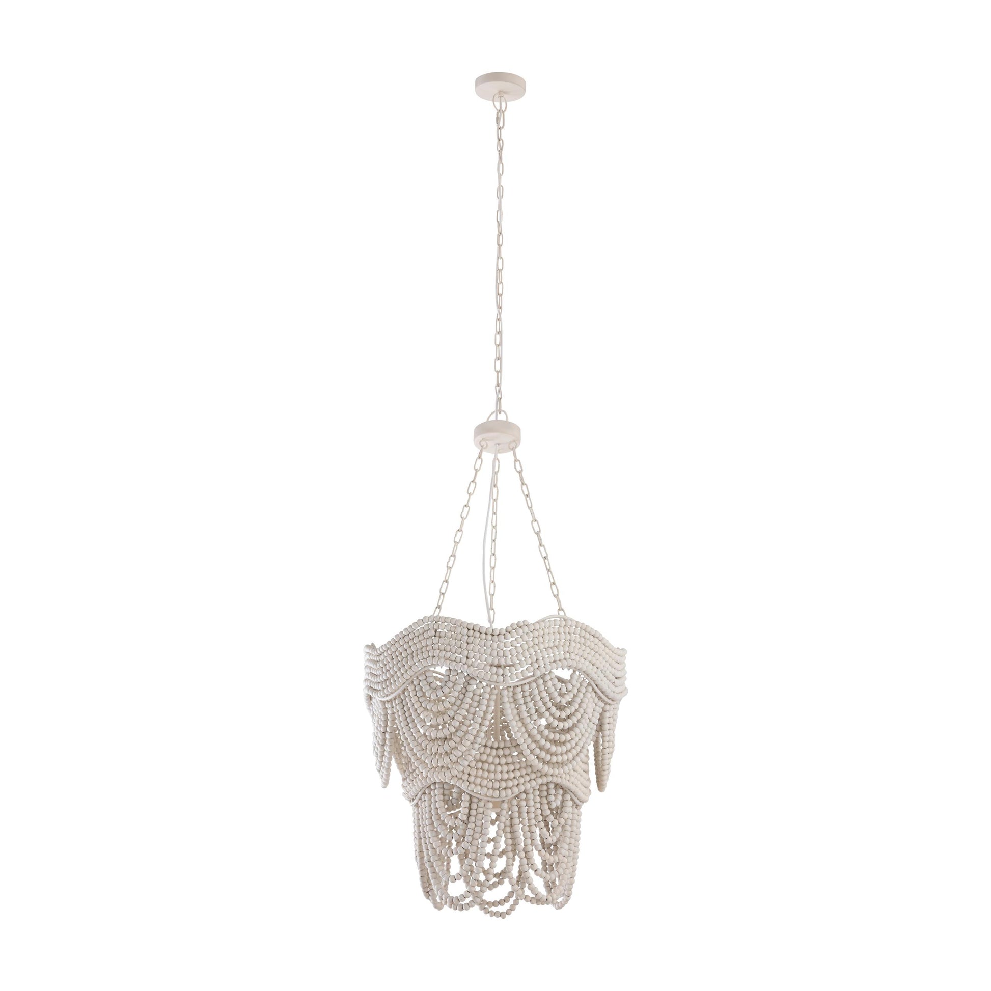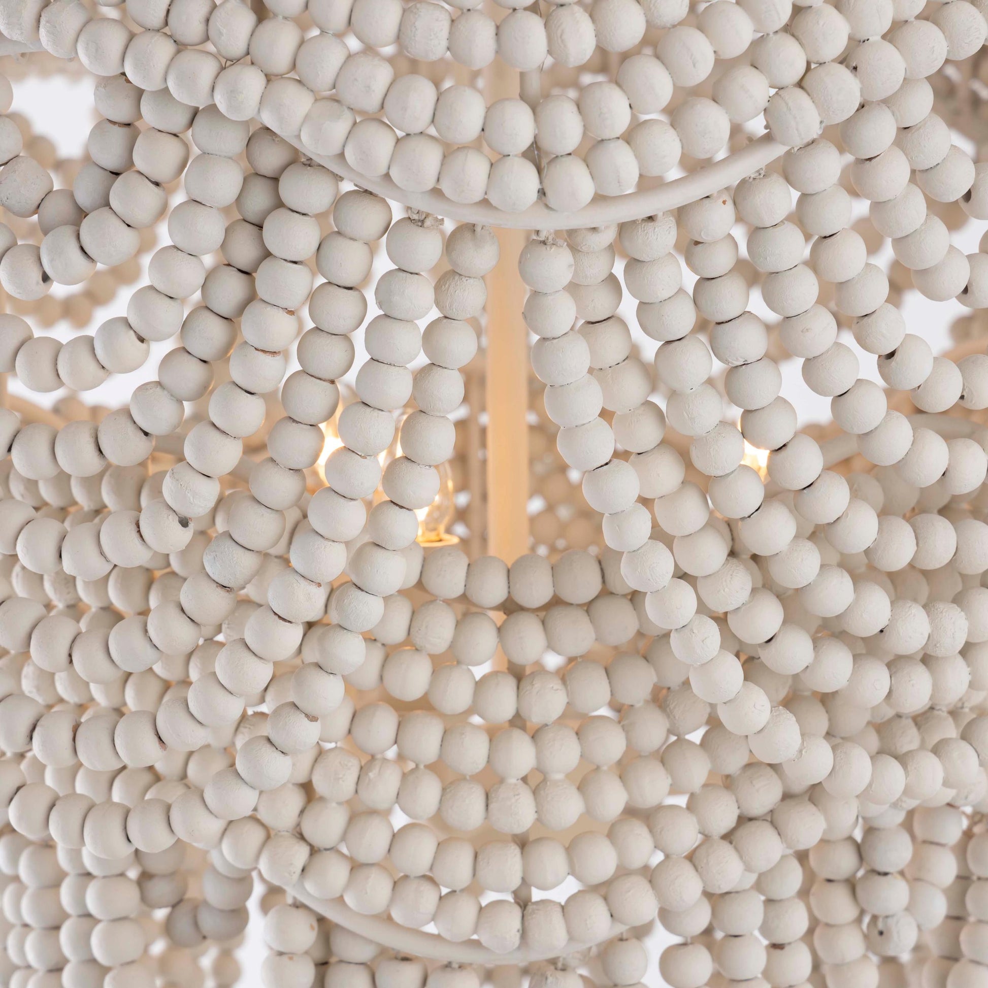 Dress your room with this bohemian take on the classic chandelier. Crafted from wood and iron, it features wrapping and layering details with beautifully cascading rows of beads, available in Ivory and Black color options.