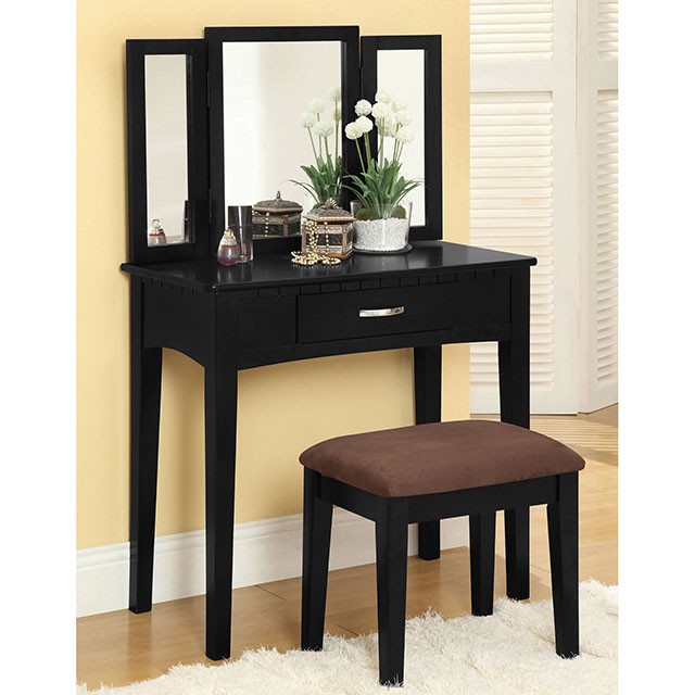 | Dimensions | TABLE: 32"L X 16"W X 30"H, MIRROR: 30 1/4"L X 20 1/2"W X 3/4"H, STOOL: 18 1/4"L X 13"W X 17 1/2"H | |