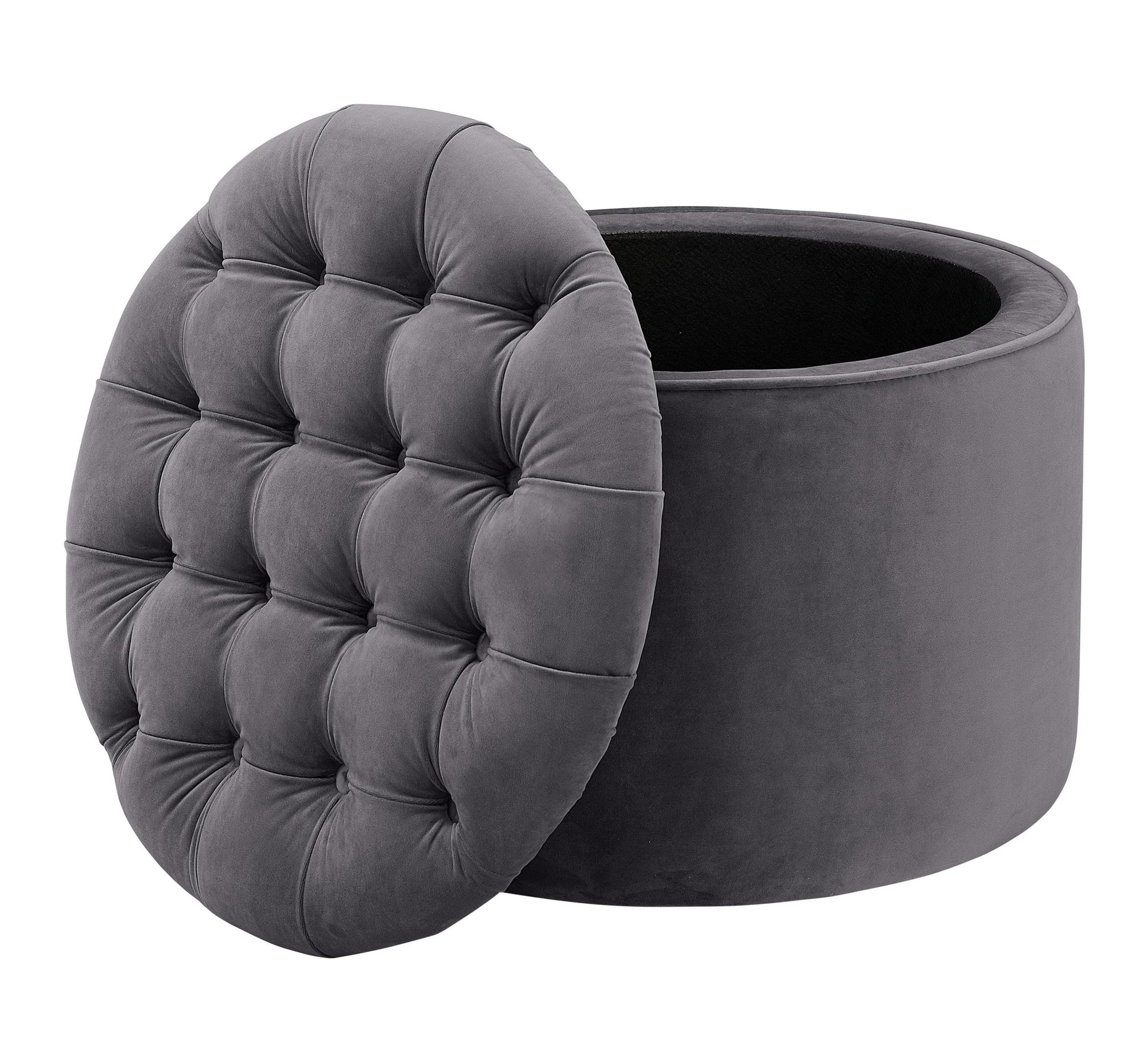 Make storage glam. Beauty is taken to new heights with the Queen storage ottoman. Whether you use it as a foot stool or side table the elegant tufting and rich velvet will make you feel like a royal. So put your things away and look stylish while doing it. Available in multiple sumptuous velvet color options.