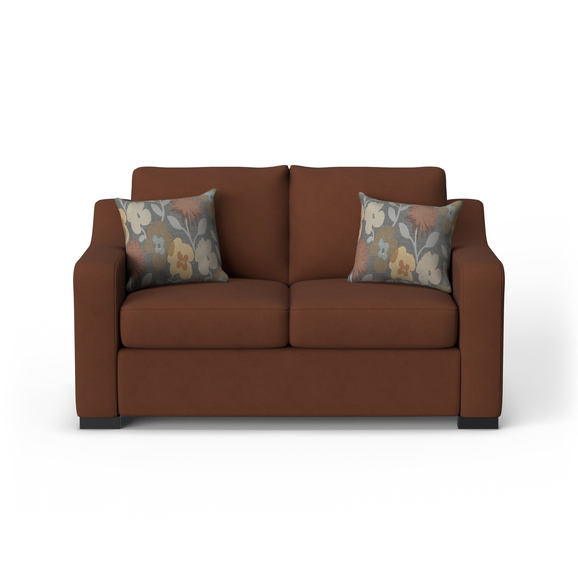Harmonious Flair Cozy and casual yet stylishly relevant, the Quinn loveseat exudes an effortless vibe that harmonizes with any decor. Gently sloping track arms sit atop black recessed legs to make a statement. Two accent pillows add flair, while plush, sink-in cushions ensure that comfort never gets compromised. Create the perfect, relaxed look for your living space with your choice of upholstery fabrics, including performance and sustainable options. Transitional style with a gently sloping track arm 2” black recessed legs Includes two accent pillows in your choice of fabric to match your personal style The patented Blue Steel Spring in the seat provides unmatched support and lasting comfort Sustainably sourced wood frame delivers exceptional durability The removable and reversible seat and back cushions allow you to flip and rotate them for even wear The seat cushions have a high resiliency foam core that is engineered to maintain its shape over time and contain a layer of recovery foam and a soft fiber top for luxurious comfort Upholstered in your choice of more than 250 select fabrics, including those with performance and sustainability characteristics Handcrafted in North America Model Number: 5802-20 Dimensions 38H x 65W x 39L