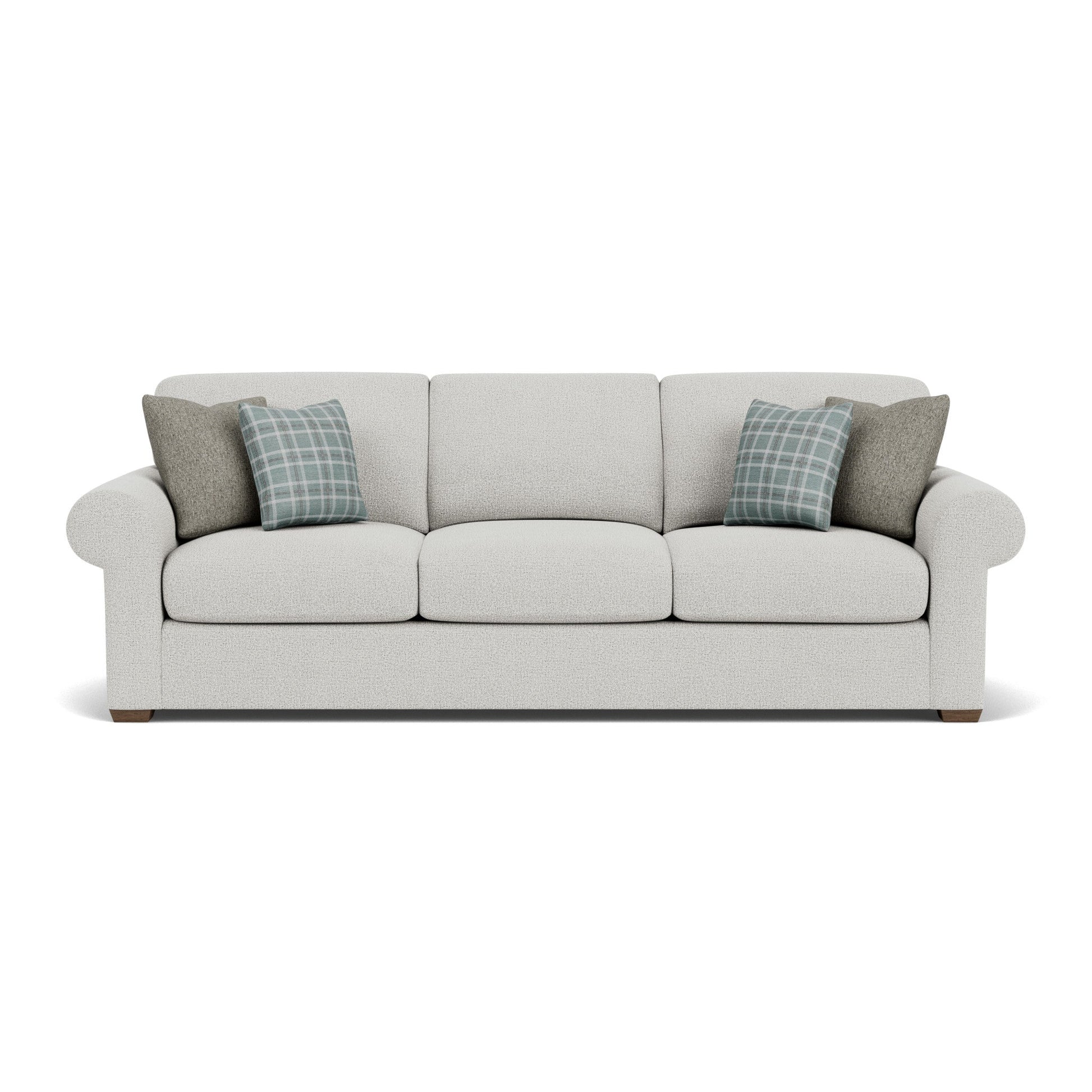 Classic comfort for everyday use Randall delivers a classic, relaxed design. Large rounded armrests, roomy box seat cushions and a soft pillow back will make it hard to give this seat up. Square tapered legs are casual and stylish, making this sofa a great fit for quiet reading in the den or game day in the family room. Model Number: 7100-32 Dimensions 37H x 105W x 41L