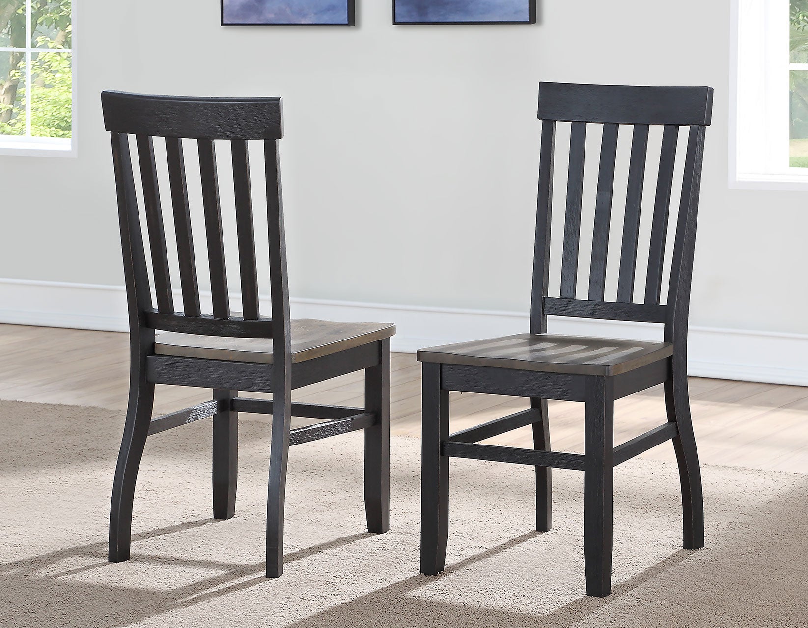 Update your dining space with Raven Noir, This farmhouse styled set gives classic cottage styling a modern take by combining clean lines with a two-tone ebony and driftwood finish. A 59.5-inch table easily accommodates six guests and pairs beautifully with either contoured Schoolhouse styled chairs or tapered-leg benches that can be mixed or matched to fit your own personal style.