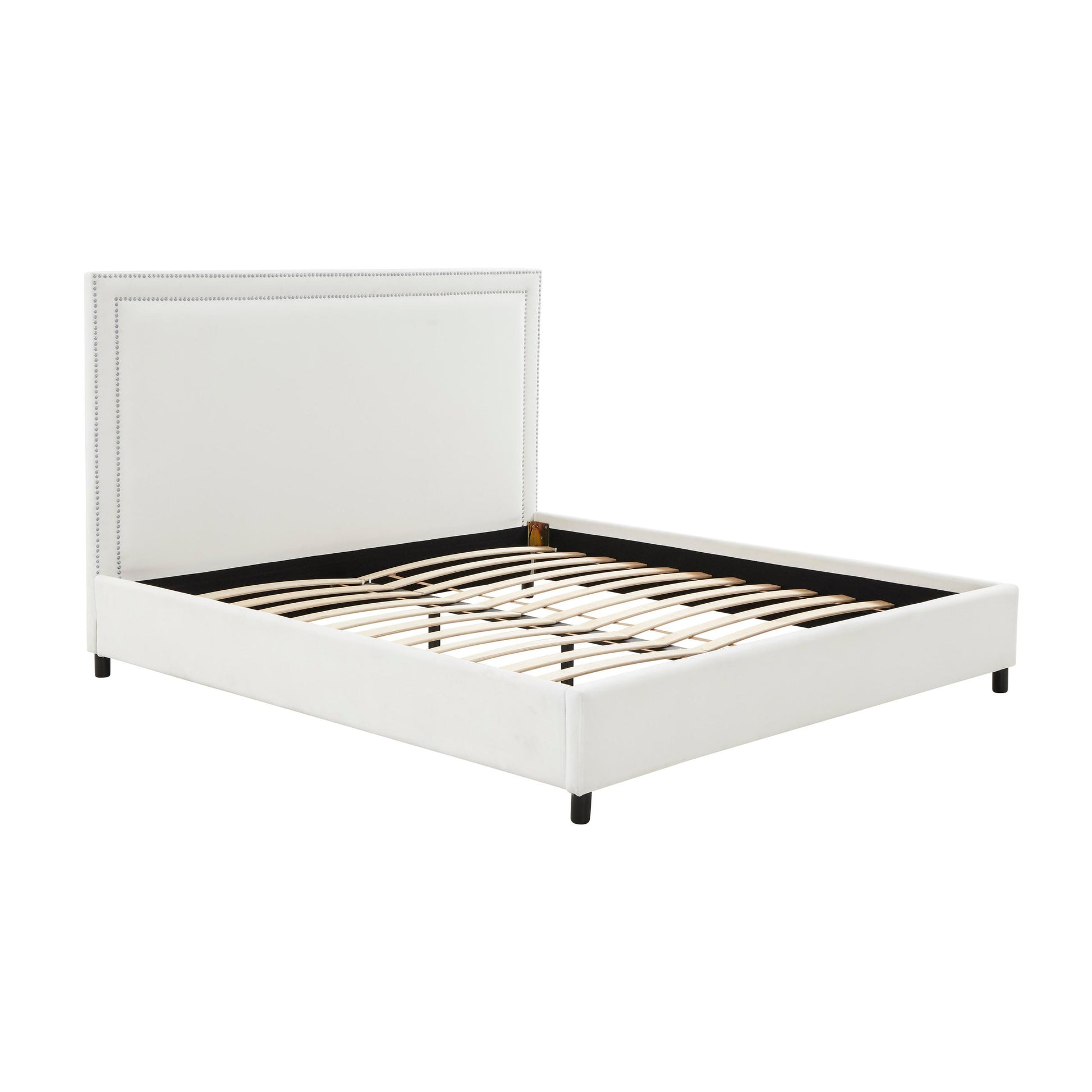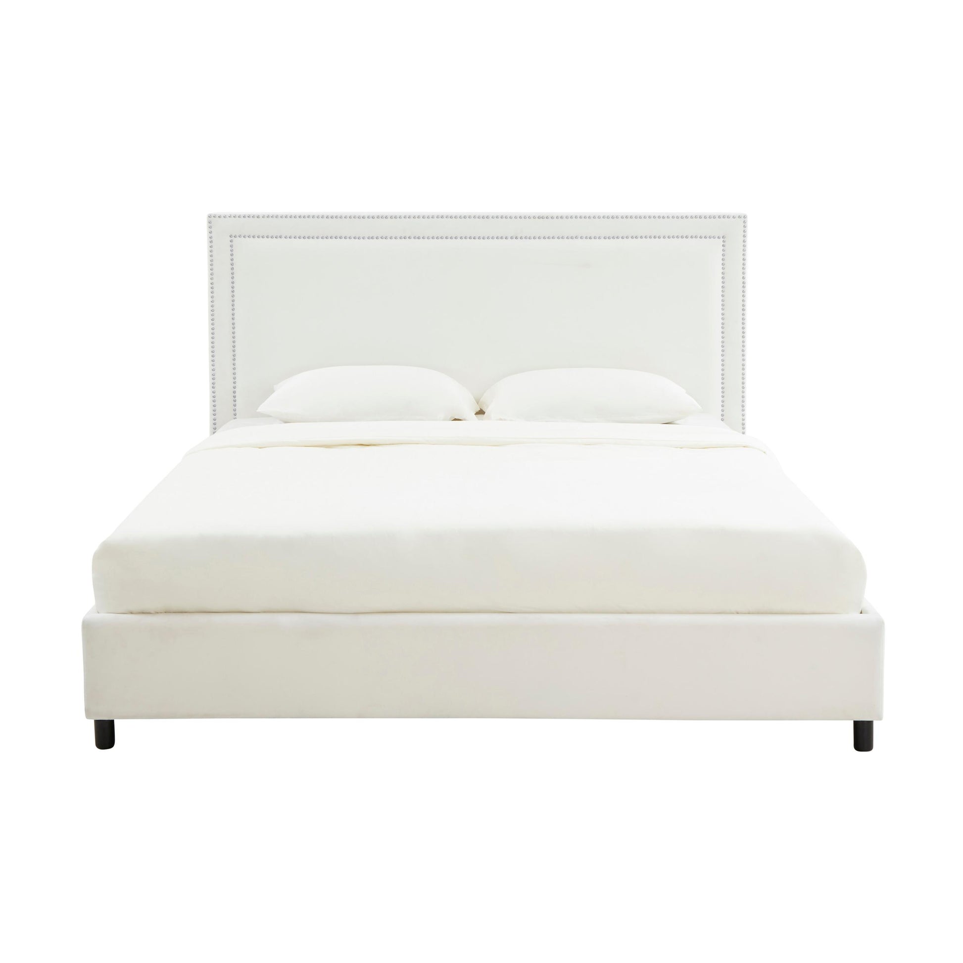 We know you'll fall in love with our polished Reed bed. A clean-lined silhouette, upholstered in an opulent velvet, with bold hand applied nail head accents that will dazzle a room like no other. It's time to bring glam to your bedroom. Slats included, no box spring required. Available in Queen and King sizes.