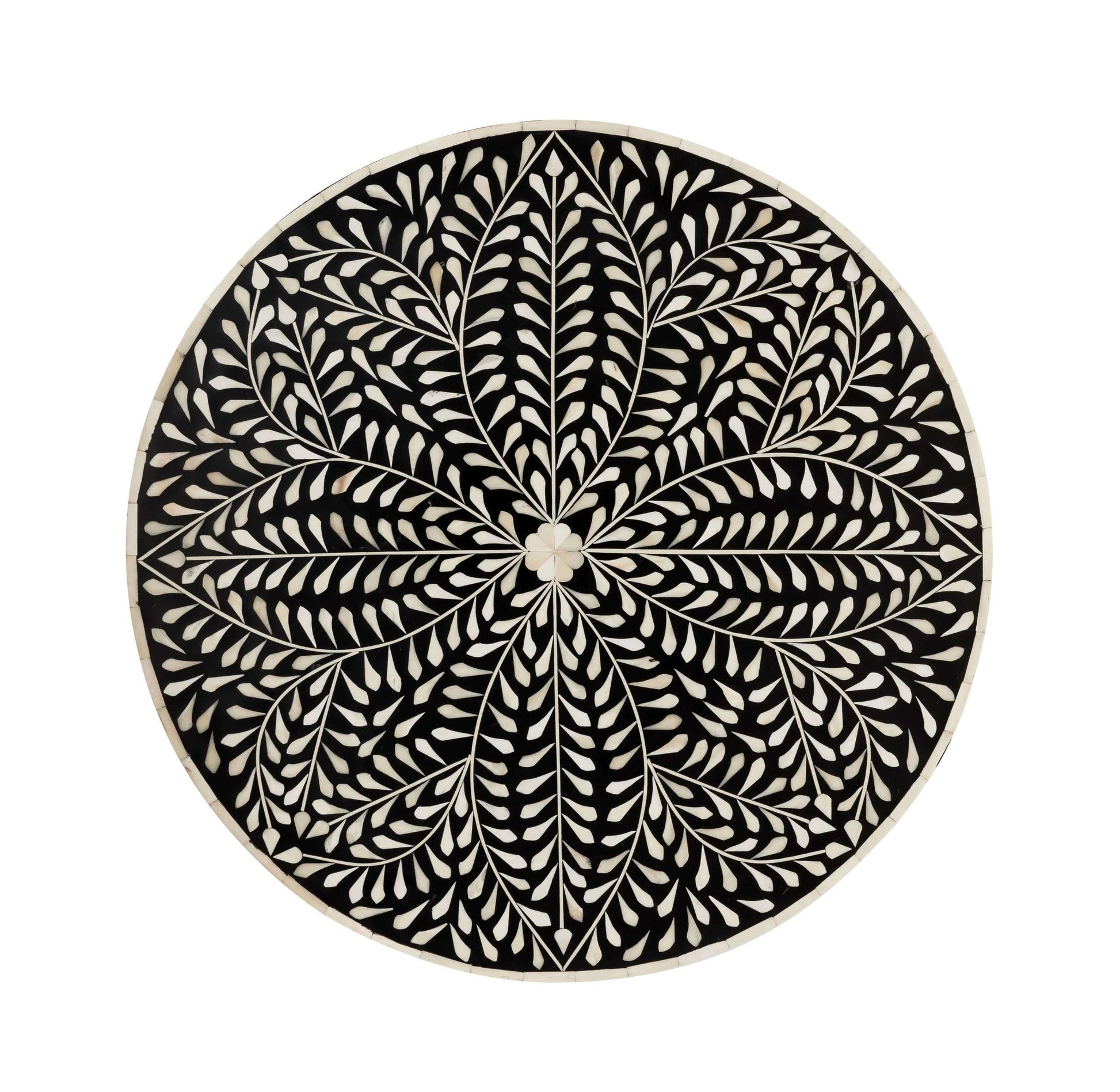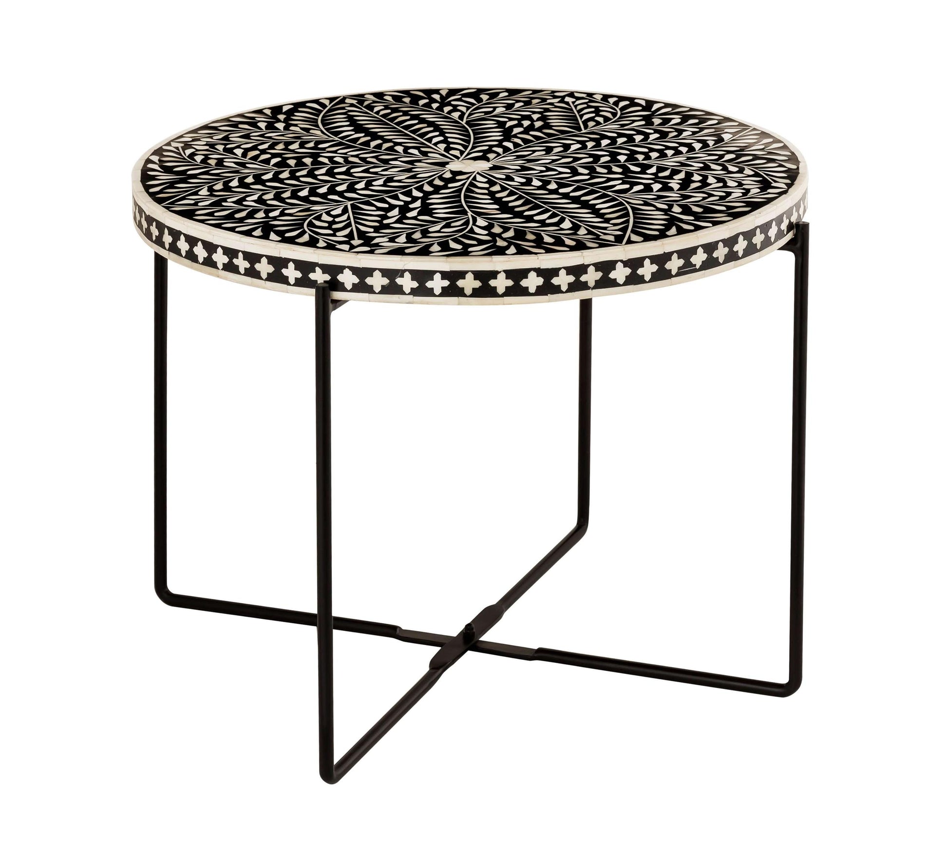 Handcrafted bone-inlay mosaics give this otherwise simple occasional table an undeniable sense of luxury. Its foldable, yet sturdy base offers convenience and minimalist design.