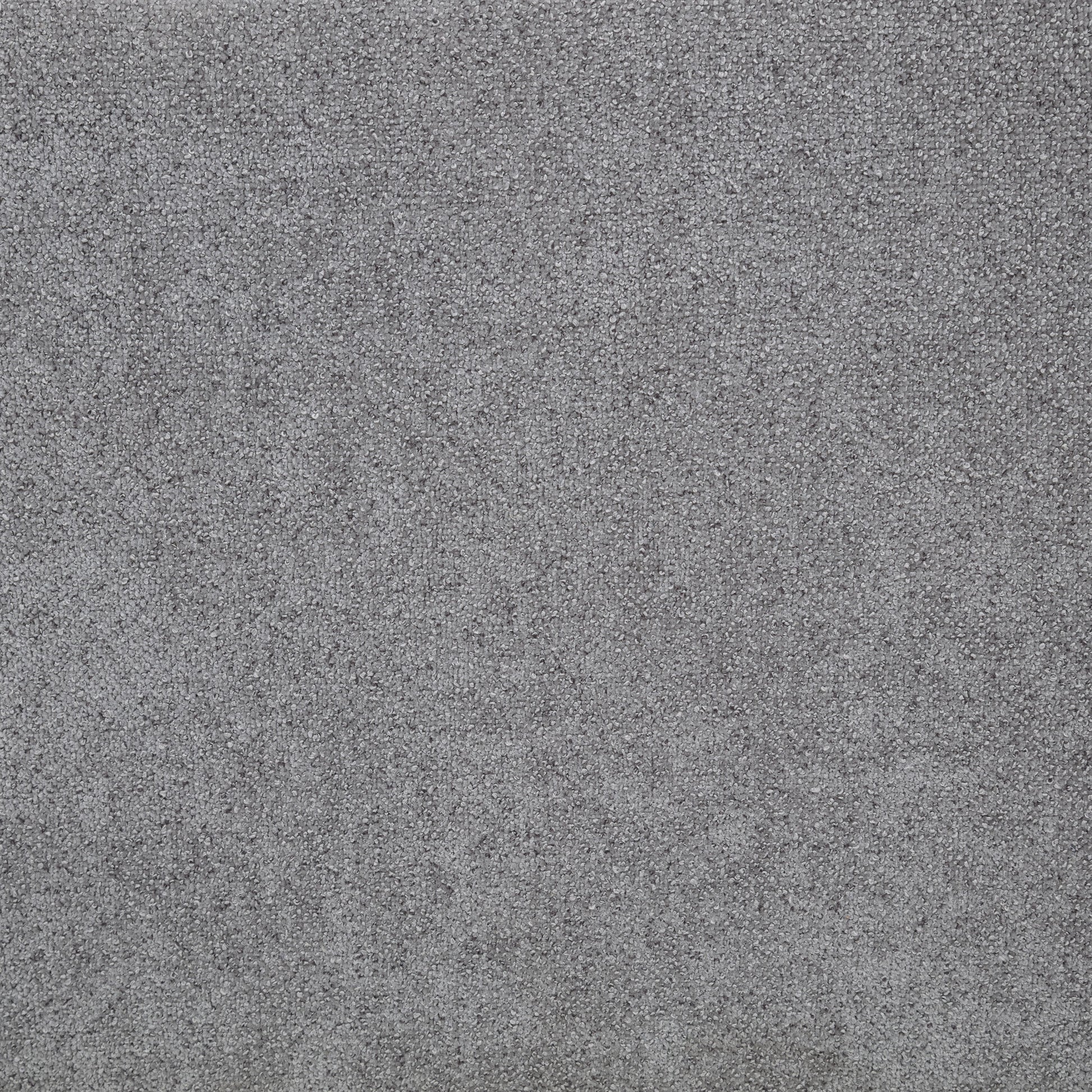 • Grey fabric upholstery offers soft texture and tailored visual warmth