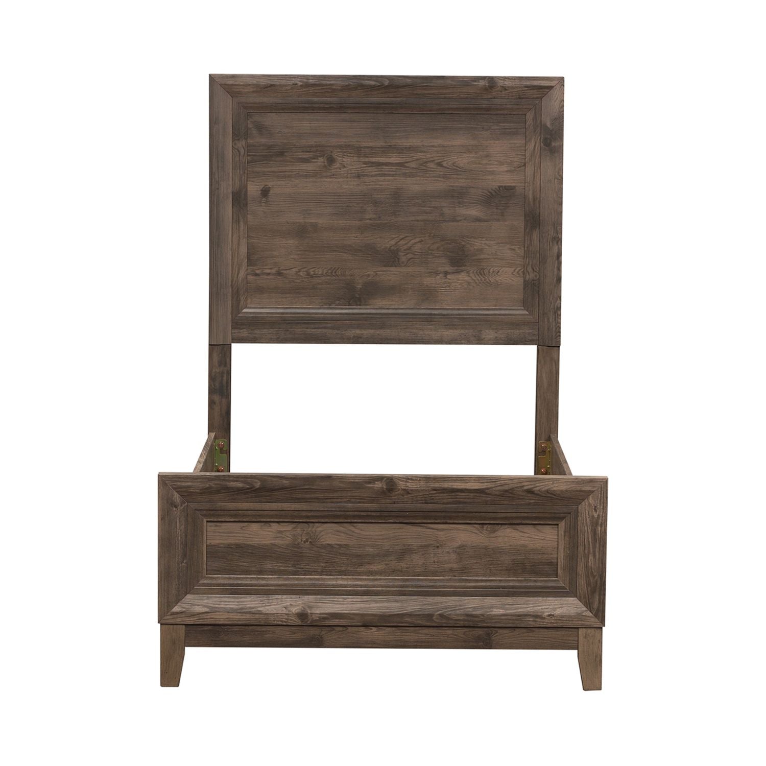 Enhance any room with this urban Ridgecrest panel bed. Crafted by Rubberwood solids and Paper Laminate, this bed features a Cobblestone finish, hook on rails, and a center support slat system, all anchored by crafted tapered legs. This bed offers an effortless blend of materials with distressed finishes, making it extremely versatile and adaptable to any space.
