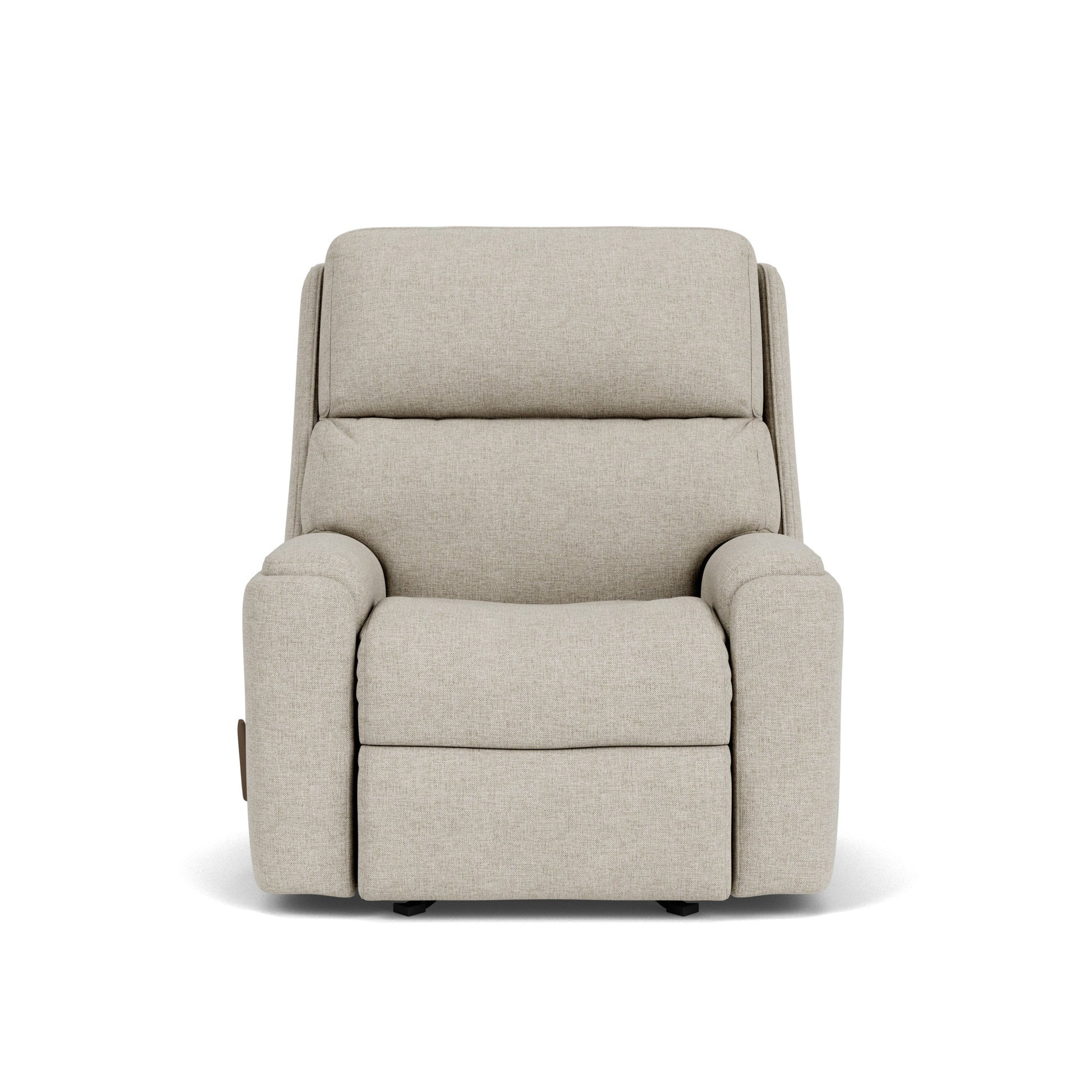 Simply Supportive Unwind with the soothing motion of the Rio Rocking Recliner. In the seated position, this recliner features a comforting back and forth motion that’s great for rocking babies or yourself to sleep. When you’re ready to relax, use the convenient handle on the arm to adjust the recline. Other features designed to enhance your wellness include divided back cushions that support your neck, back and lower lumbar. Inset padded armrests have refined look and keep your forearms comfy. Bolstered by our patented Flexsteel DualFlex Spring System™ that combines firmness with flexibility, the Rio Rocking Recliner will stay comfortable for years to come. Find a look that elevates your home by choosing from over 250 fabric options, including our cleanable, durable high-performance fabrics. Rocking recliner provides soothing movement in the seated position, helping you relax Handle-activated recline system on arm allows you to manually yet efficiently move between sitting and reclining Divided back cushion cradles your neck, back and lower lumbar for enhanced comfort Streamlined inset padded armrests have a seamless look and comfortable feel Built to last with our patented Flexsteel DualFlex Spring System™—sturdy steel ribbons attached to flexible coils that offer a wide range of motion and durability High-density cushions consist of a high-resiliency, high-density polyurethane foam core with a soft fiber wrap that ensures comfort as you sit and recline Available in over 250 fabrics to suit any décor Available in durable, cleanable performance fabrics that will withstand everyday use by an active family Removable back allows for easy lifting and maneuvering through doorways Footrest easily lowers when you apply pressure in a downward motion Model Number: 2904-51 Dimensions 42H x 38W x 41L
