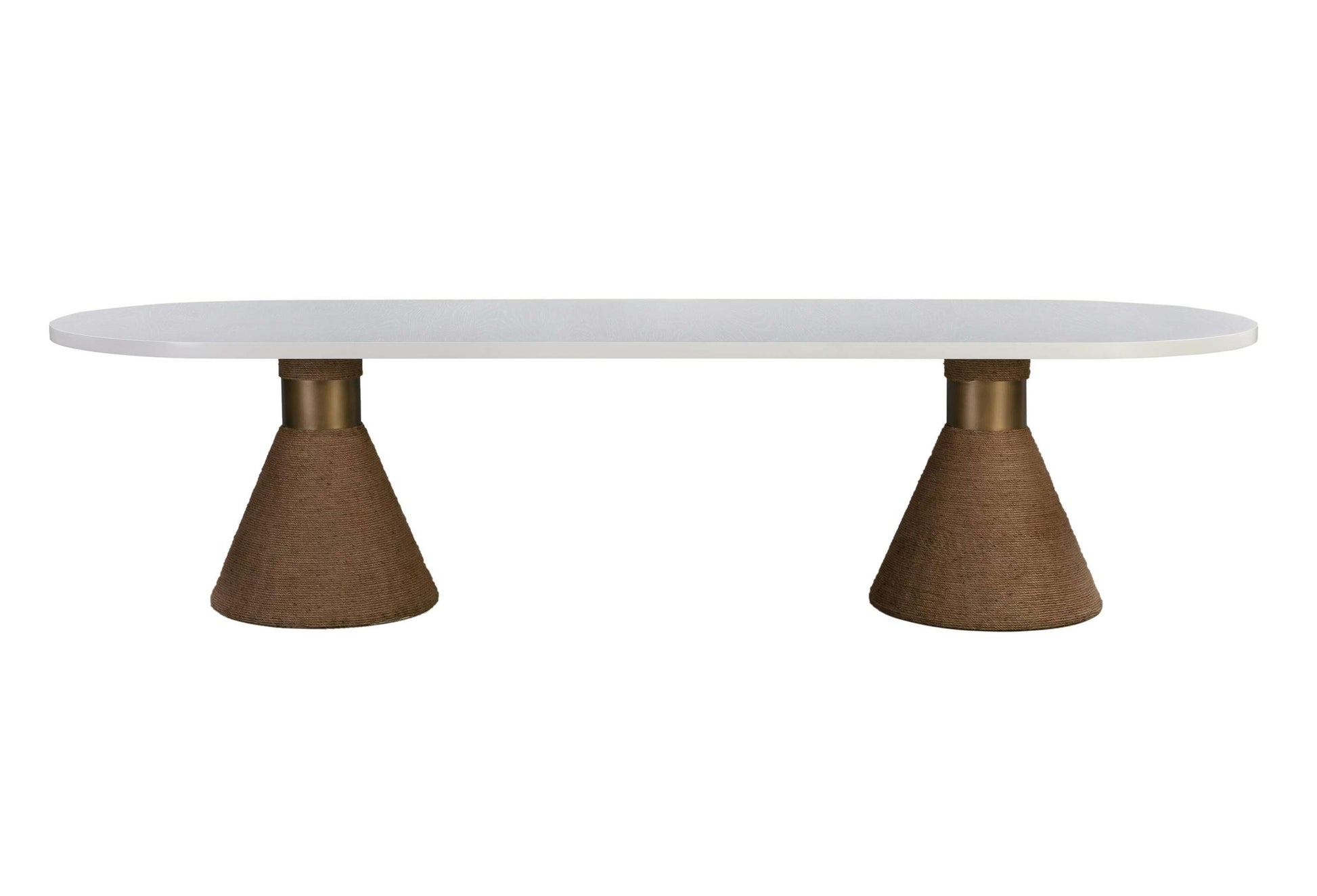 Coastal elements blend swimmingly with the modern silhouette of the Rishi Dining Table. Available in multiple shapes and color options, its acacia top and textured rope base bring summer vibes to your home all year long.