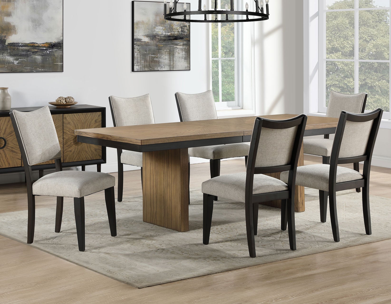 Arini 7-piece Round Dining Table Set Sand Wash and Black