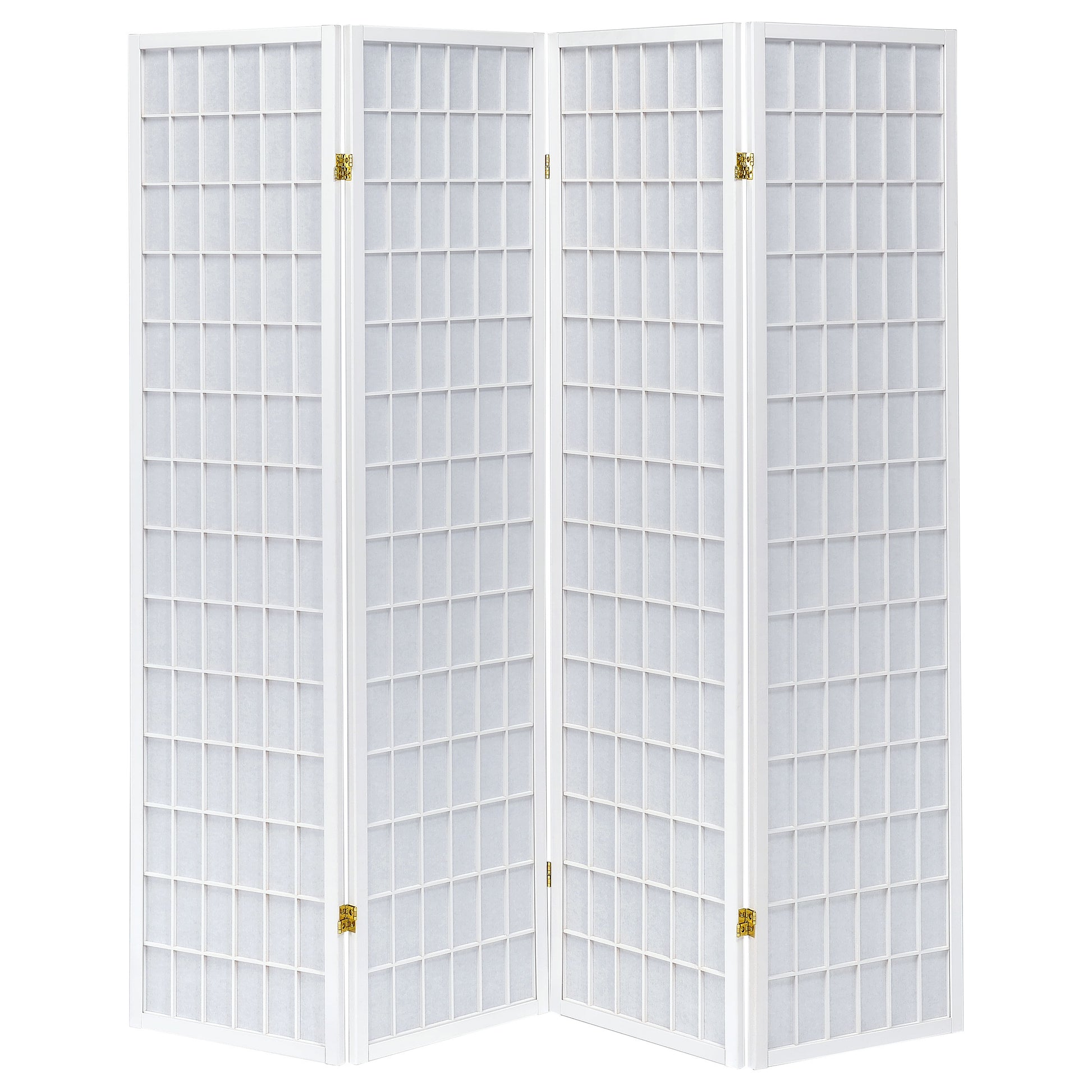 • Four-panel folding room divider in white with contemporary grid motif