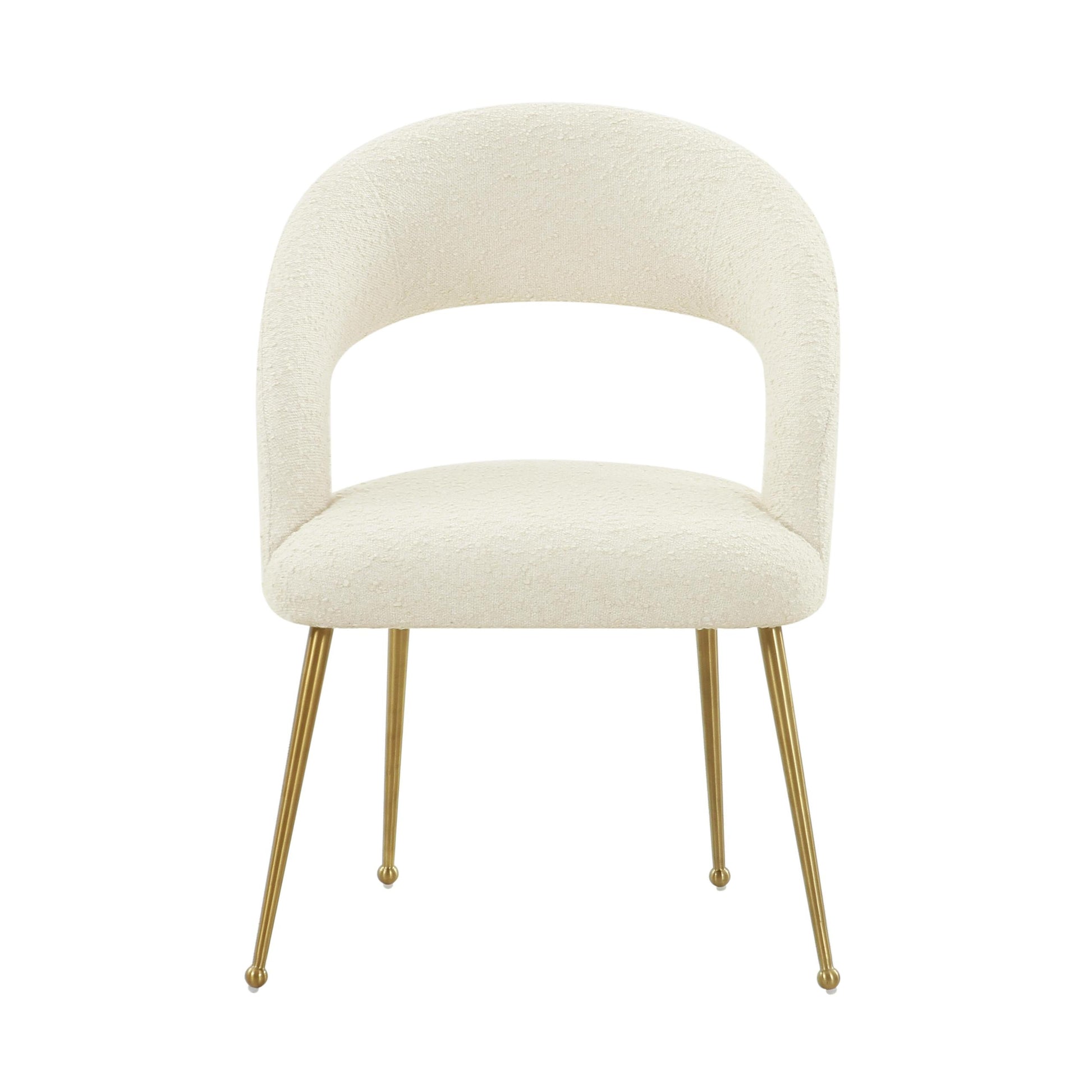 Mid Century Modern meets Hollywood Glam to form the striking Rocco dining chair. Boasting lavishly soft boucle upholstery and stylish stainless steel legs, this versatile chair will enhance any dining area. Available in cream boucle and several velvet color options, the Rocco compliments our Maxim dining table beautifully.