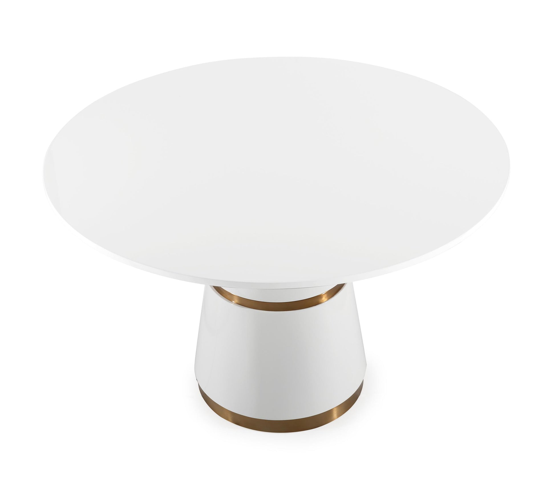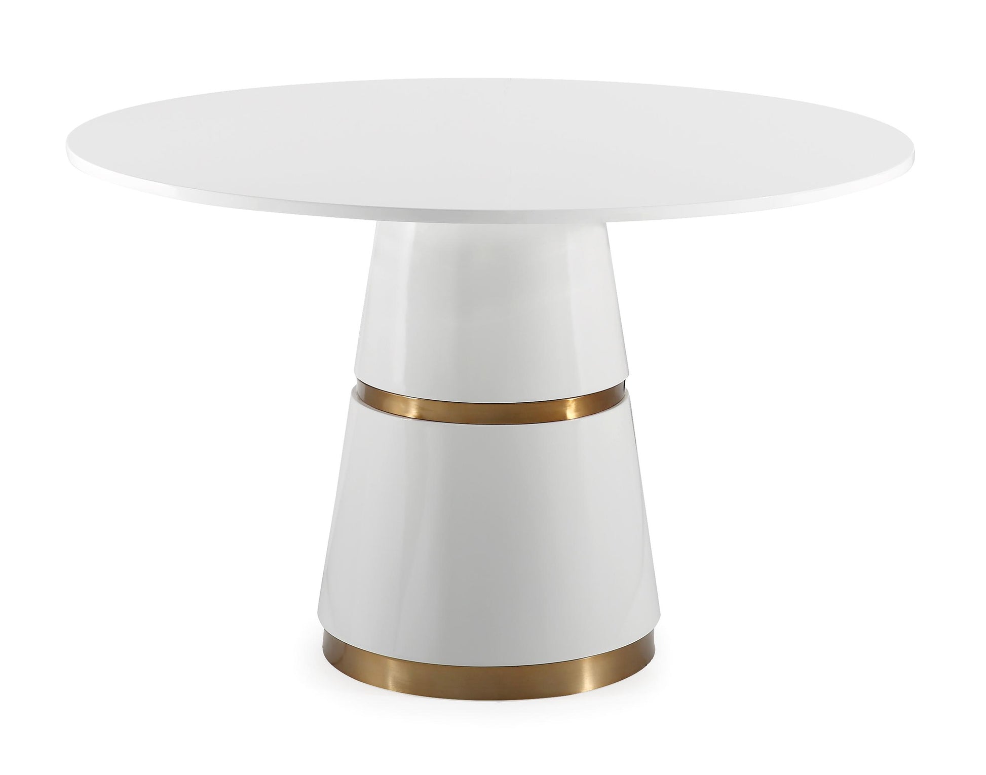 Our love for Hollywood Glam has inspired us to design the statement piece that is, the Rosa dining table. Featuring a conical base and round table top, its clean white finish is beautifully complemented with two gold stripes. Up to four people can dine comfortably on this stunning table.