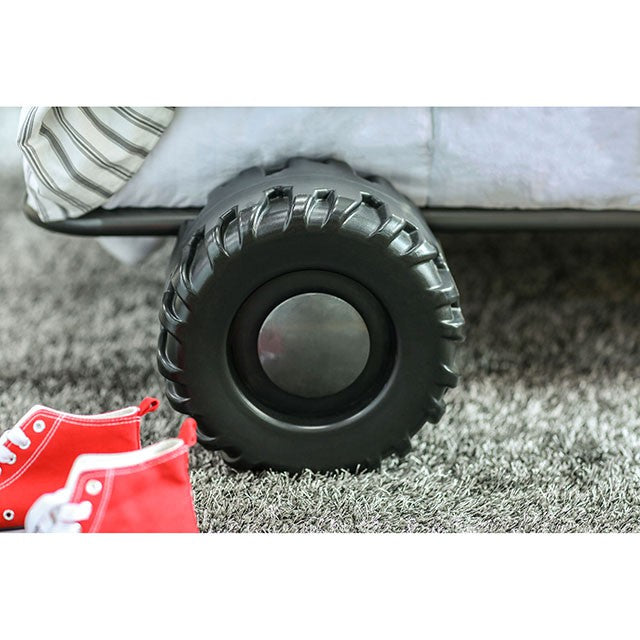 Put your little one in the driver's seat to help them speed off to sweet dreams! Whether they're racing towards dreams in the car or stretching out in the loft bunk, you'll be able to prioritize floor space for safe fun every day. A metal mesh guardrail around the top bunk provides secure protection, ensuring no accidents get in the way of your child's fun. Paired storage pieces hold a multitude of items that will help keep the playroom or bedroom organized.
