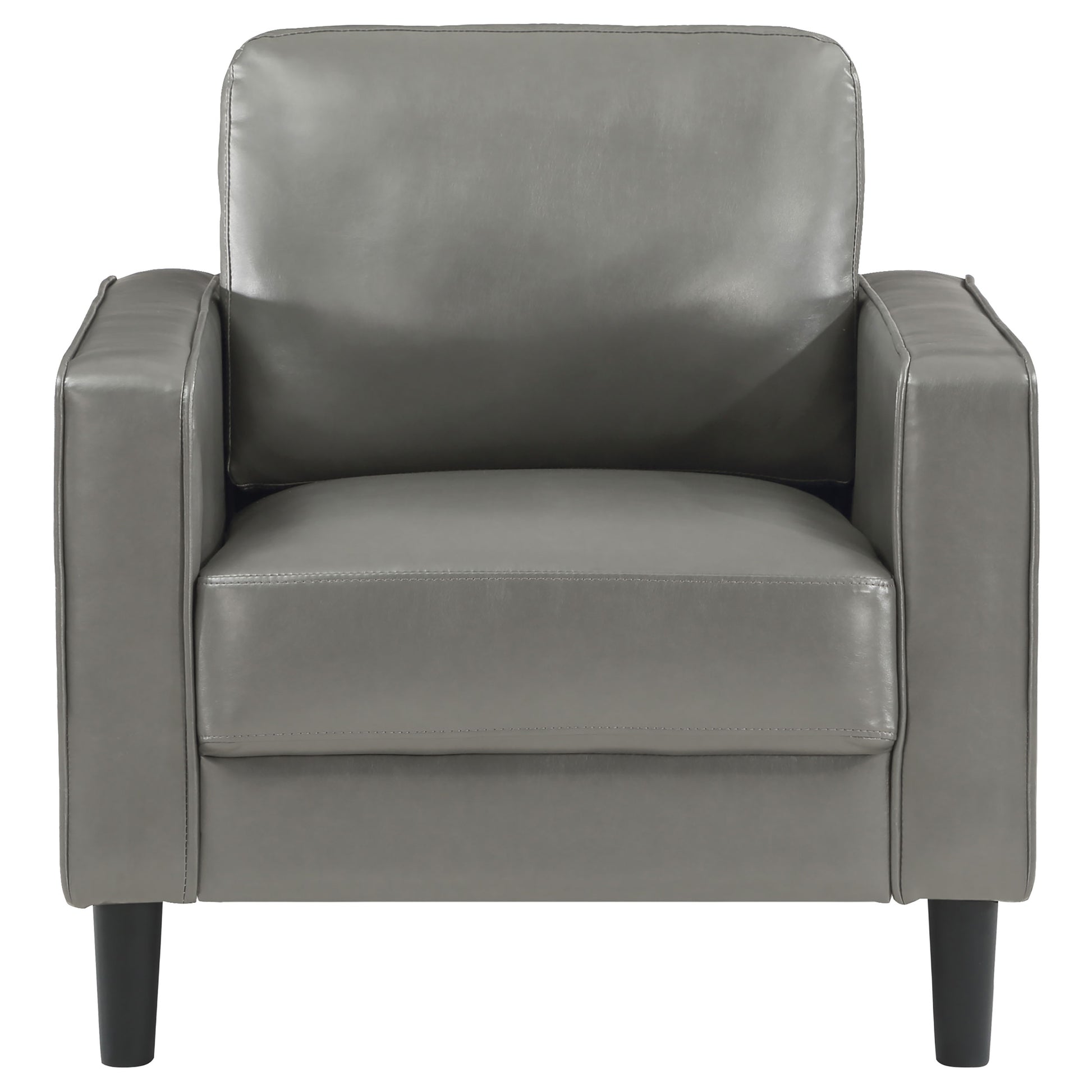 • Grey faux leather upholstery provides a bold and sophisticated style