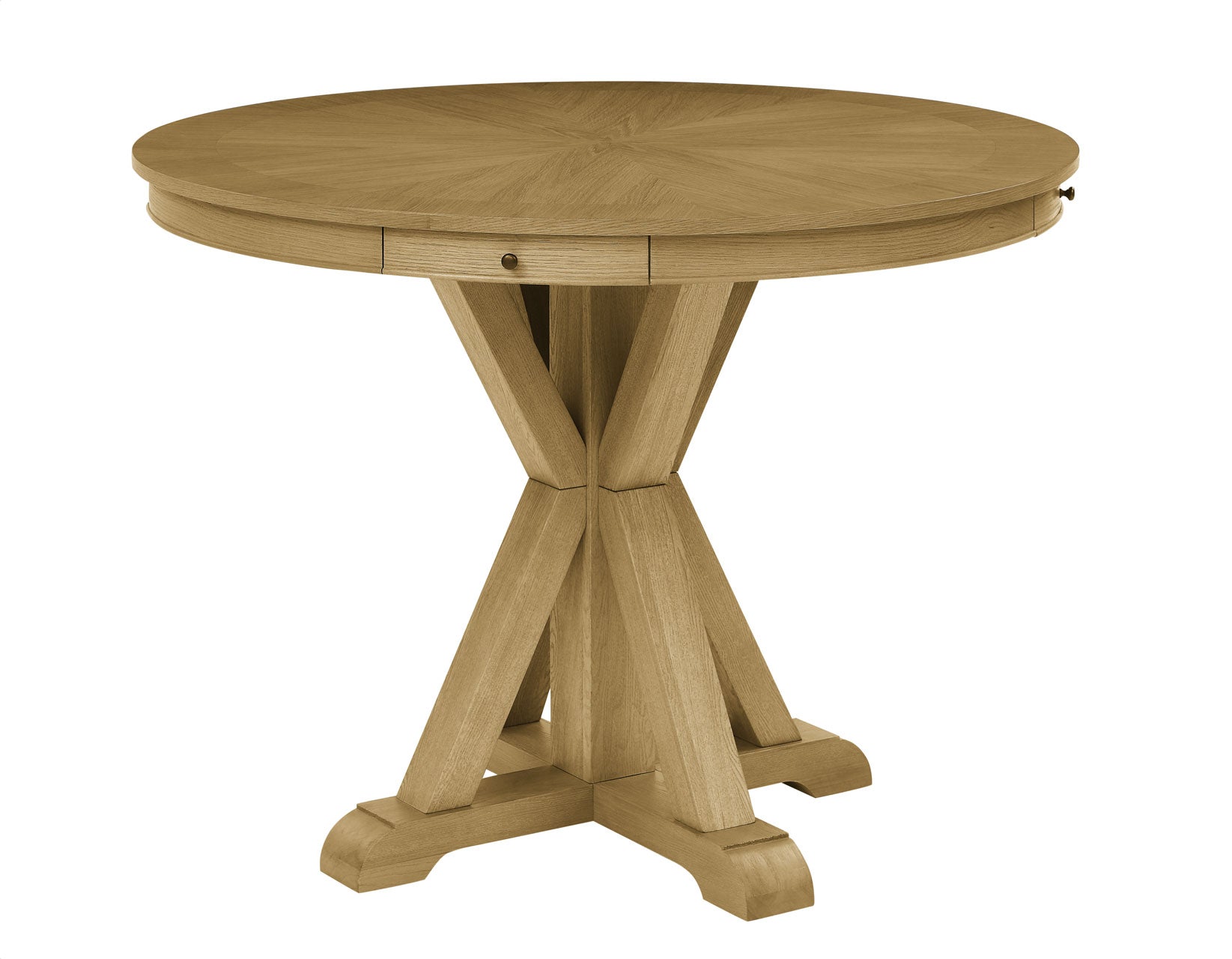 Rylie 48-inch Round Counter Dining Table with 4 Drawers, Natural Finish