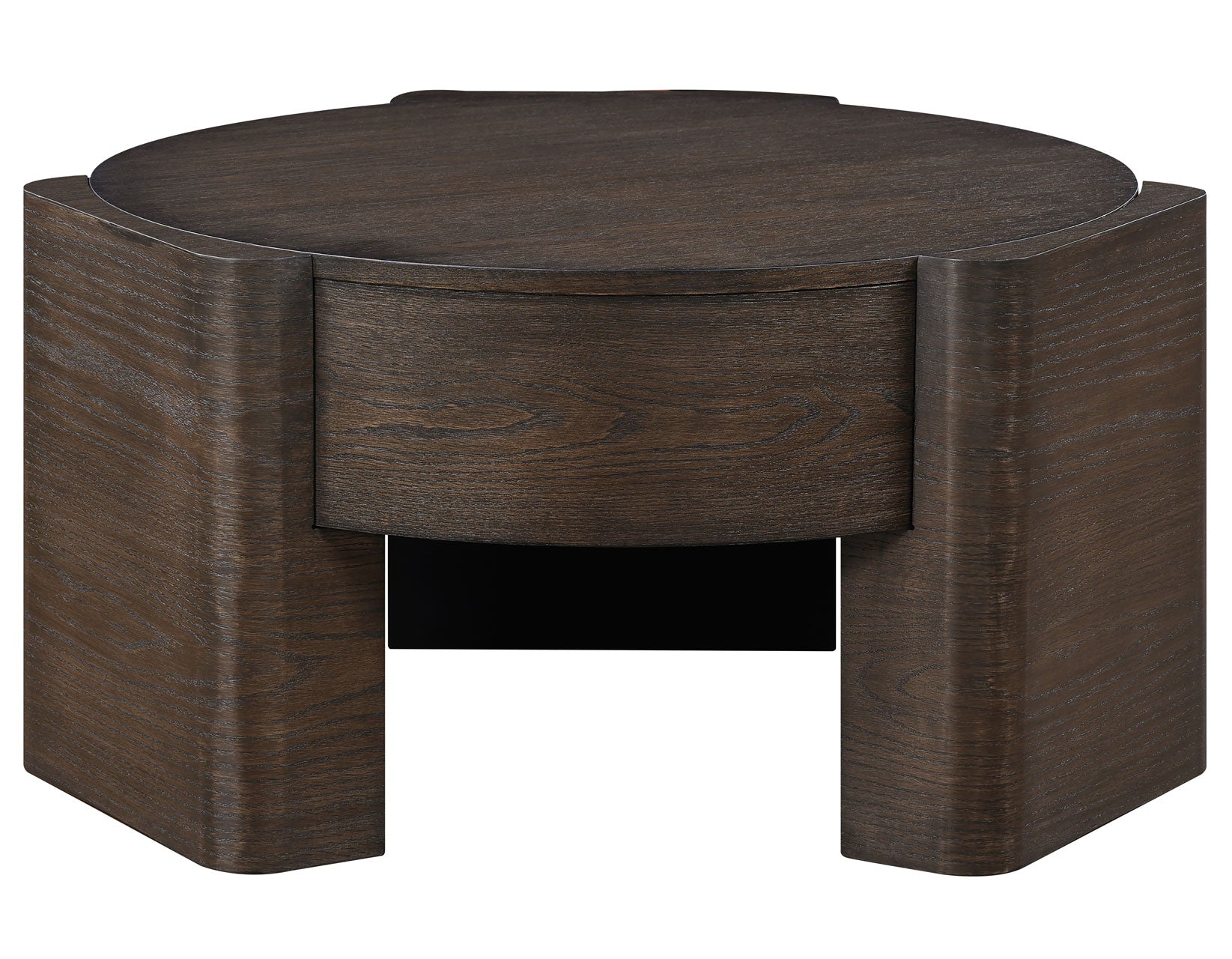 Modernly elegant with flowing round shapes, the Salina 3-Piece Table Set completes any room with stunning table accents. Crafted from oak veneers and solid Asian hardwoods in a warm espresso finish, the set includes a 32.5″ round coffee table with hidden casters and two matching end tables. The coffee table’s smooth top and built-in mobility let you whisk it out of the way effortlessly when needed. Each end table features clean lines and a lower shelf for display or storage. Sleek and versatile, Salina suits any modern or transitional space.